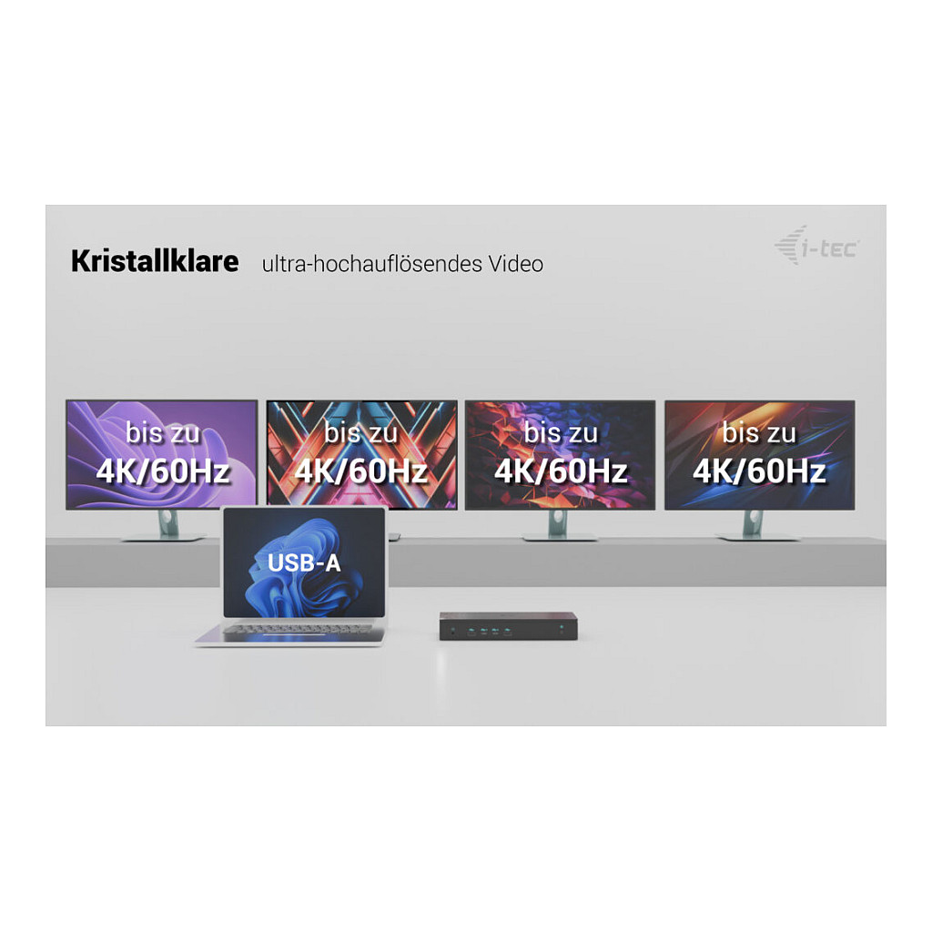 * Bei Anschluss über USB-A werden nur vier Monitore über DP- und HDMI-Anschlüsse (Videoanschlüsse 1-4) unterstützt und das Laden von Notebooks/Tablets ist nicht möglich.