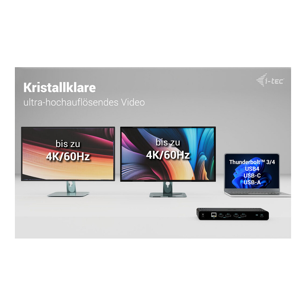 Eine leistungsstarke und dennoch erschwingliche Dockingstation, die die Ausgabe an bis zu zwei externe Monitore in hoher Auflösung (bis zu 4K/60Hz) unterstützt. Die Dockingstation kann mit praktisch allen Laptops verwendet werden, da sie den Anschluss an alle gängigen Ports unterstützt: USB 3.0, USB-C, USB4 und Thunderbolt“ 3/4 und unterstützt alle gängigen aktuellen Betriebssysteme.