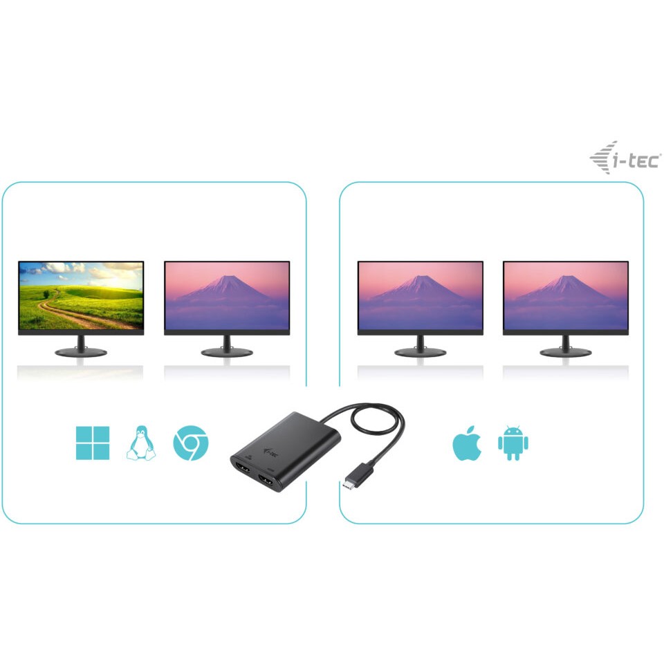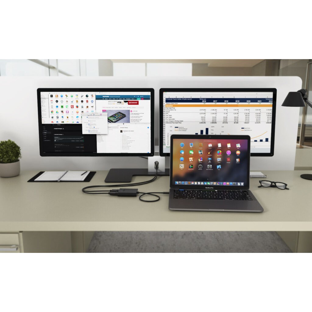 Erweitern Sie Ihren Desktop um zwei externe HDMI-Monitore oder verbinden Sie Projektoren oder Fernseher mit Ihrem Notebook, Tablet oder PC über den neuen USB-C- oder Thunderbolt 3-Anschluss. Der Adapter unterstützt 1x 8K / 30 Hz oder 2x 4K / 60 Hz*.