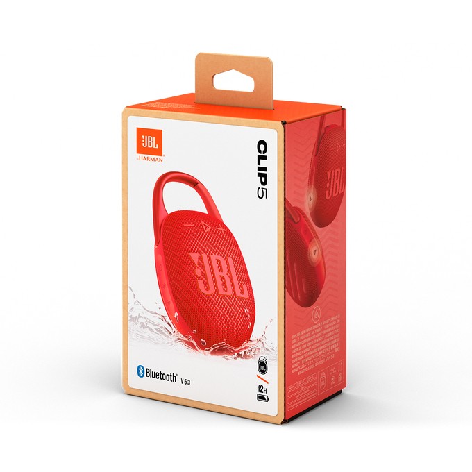 Der ultra-kompakte Bluetooth-Lautsprecher JBL Clip 5 ist so klein, dass er bequem in eine Hand passt, aber lass dich nicht täuschen – er ist groß, wenn es darauf ankommt. Ein breiter, vollständig integrierter Karabinerhaken ist groß genug, um an fast allem befestigt zu werden. Der leistungsstarke Lautsprechertreiber und die Passivmembran liefern volleren, lauteren JBL Pro Sound und druckvolle Bässe. Eine einzige Aufladung bietet bis zu 12 Stunden Wiedergabezeit – und noch mehr, wenn Playtime Boost eingeschaltet ist. Übrigens: Der Lautsprecher ist gemäß IP67 wasser- und staubdicht, damit du ihn auch auf deine nächste Wanderung oder deinen nächsten Campingausflug mitnehmen kannst. Kopple zwei Clip 5 für Stereo-Sound oder verbinde ihn direkt mit mehreren JBL Auracast-fähigen Lautsprechern für noch volleren Sound auf größerem Raum. Und er ist in verschiedenen Farben erhältlich, damit du genau den findest, der zu dir passt. Mit dem JBL Clip 5 wird jeder Tag zu einem Abenteuer.