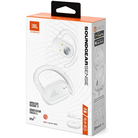 Die kabellosen JBL Soundgear Sense Open-Ear-Kopfhörer unterstützen die JBL OpenSound-Technologie mit Luftleitung, die den Gehörgang nicht vollständig abschließt und sie so bequem macht, dass du sie stundenlang tragen kannst. Die flexiblen Ohrbügel lassen sich drehen, sodass du wählen kannst, ob du dich auf deine Musik oder Anrufe konzentrieren oder mehr Geräusche aus der Welt um dich herum zulassen möchtest. Ein abnehmbarer Nackenbügel sorgt für einen noch sichereren Sitz beim Training und die IP54-Schutzklasse bedeutet, dass Schweiß ihnen nichts ausmacht – oder sogar ein leichter Regen. Dank vier Mikrofonen ist deine Stimme auch an windigen Tagen kristallklar. Mit der My JBL Headphones-App kannst du anpassen, wie du die intuitiven Touch-Bedienelemente an jedem Ohrhörer verwendest, um deine Musik und Anrufe zu steuern. JBL Soundgear Sense ist so anpassungsfähig wie du.