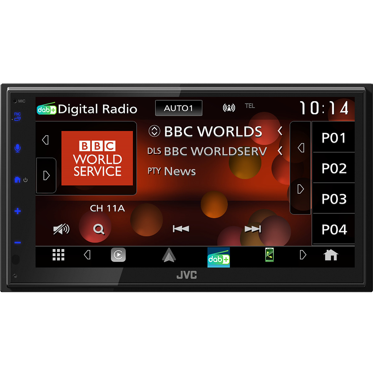 JVC KW-M695DBW. Produktfarbe: Schwarz, DIN Größe: 1 DIN, Ausgangsleistung: 200 W. Unterstützte Audioformate: AAC, FLAC, MP3, WAV, WMA, Unterstützte Bildformate: BMP, PNG, Unterstützte Videoformate: H.264, MKV, MPEG1, MPEG4, WMV. Display-Typ: LCD, Art des Touchscreens: Kapazitiv, Bildschirmdiagonale: 17,3 cm (6.8"). WLAN-Standards: Wi-Fi 5 (802.11ac), WLAN-Frequenz: 5 GHz, Bluetooth-Profile: A2DP, AVRCP, HFP, PBAP, SSP. Unterstützte Bänder: AM, DAB+, FM, Digitales UKW-Radio: 87,5 - 108 MHz, AM-Bandbereich: 531 ~ 1611 kHz
