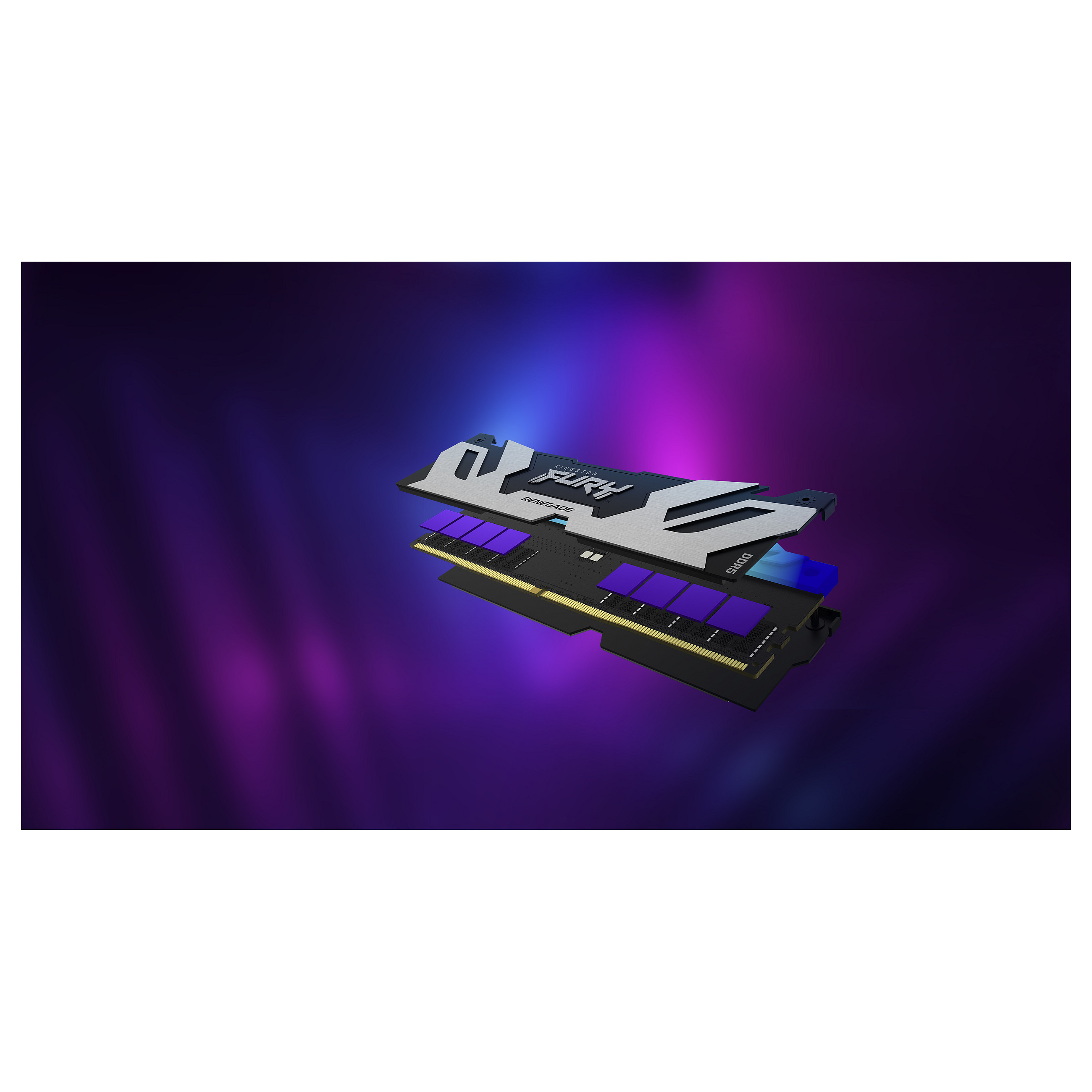 Gaming mit Stil mit dem Kingston FURY™ Renegade DDR5 RGB** Speicher, der für extreme Leistung auf DDR5-Plattformen der nächsten Generation entwickelt wurde. Schenke deinem System den Leistungsschub und das Fingerspitzengefühl, das du brauchst, damit du weiter an der Spitze bleibst, mit UDIMM- oder CUDIMM-Modultypen für ultraschnellem Speicher mit bis zu 8.000MT/s bei UDIMMs und 8.800MT/s* bei CUDIMMs, während du gleichzeitig FURY CTRL™ mit 18 personalisierbaren RGB-Beleuchtungseffekten einsetzt. Der Kingston FURY Renegade DDR5 RGB bietet schlanke, neu gestaltete, schwarz-silberne oder weiß-silberne Kühlkörper mit dynamischen Lichtleisten mit 12 LEDs, die Kingstons patentierte Infrared Sync Technology einsetzt und nahtlose, synchronisierte RGB-Beleuchtungseffekte bietet, die den Look der neuesten PC-Aufbauten ergänzen.