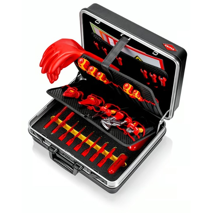 Knipex 00 21 05 EV. Produktfarbe: Rot, Gelb. Breite: 410 mm, Tiefe: 410 mm, Höhe: 187 mm. Anzahl Werkzeuge: 34 Werkzeug