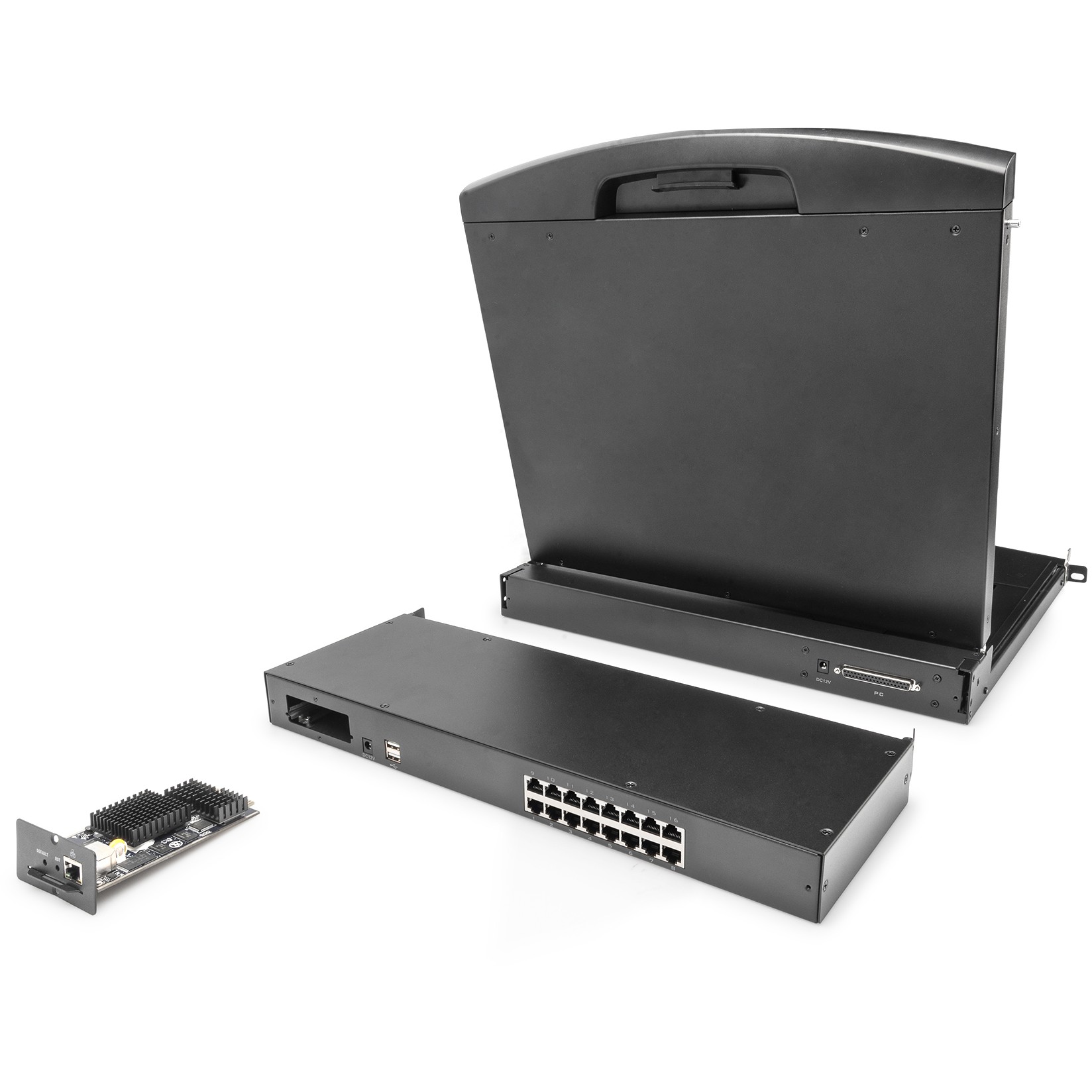 Der modulare DIGITUS® CAT 5 KVM-Switch bietet eine Vielzahl von individuellen Konfigurationsmöglichkeiten, sodass eine Anpassung auf den Einsatzbereich der Konsole abgestimmt werden kann. Dadurch wir die Konsole kostensparend und ist jederzeit mit weiteren Modulen auf- bzw. umrüstbar. Durch die flexible Konfiguration ist somit eine hohe Zukunftssicherheit der Konsole garantiert. Der modulare CAT 5 KVM-Switch bietet den Anschluss von bis zu 16 Servern über USB oder PS/2 sowie VGA per CAT 5 Adapter mit einer Reichweite von bis zu 60 m. Für den Betrieb wird die DIGITUS® 17" oder 19" modulare Konsole, Tastatur und der entsprechende CAT 5 Adapter benötigt. Die hochwertigen CAT 5 KVM-Switch Module mit IP-Funktion (optional) sind ideal für den Einsatz in kleinen bis mittelgroßen Server-Räumen, in denen ein Zugriff des Administrators jederzeit von jedem Ort gewährleistet werden muss. Sie bieten direkte Verbindung von einer lokalen Konsole oder mit dem optionalen IP-Modul über eine bestehende Internet-Verbindung mit einem Browser. Das Zubehör wird in den verschiedensten Varianten angeboten.