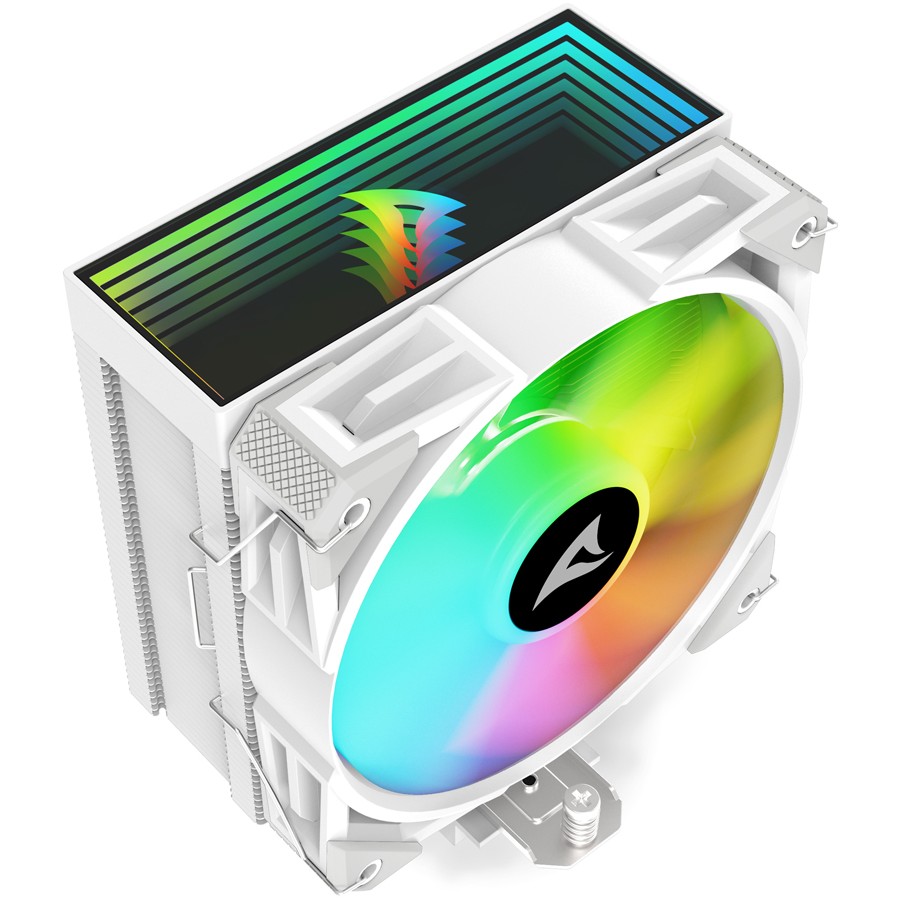 Sharkoon A40 RGB. Typ: Luftkühlung, Lüfterdurchmesser: 12 cm, Rotationsgeschwindigkeit (min.): 500 RPM, Rotationsgeschwindigkeit (max.): 1800 RPM, Luftstrom: 121,55 m³/h, Maximum Luftdruck: 2,9 mmH2O, Lagertyp: Fluiddynamisches Lager (FDB). Breite: 720 mm, Tiefe: 120 mm, Höhe: 159 mm. Produktfarbe: Weiß