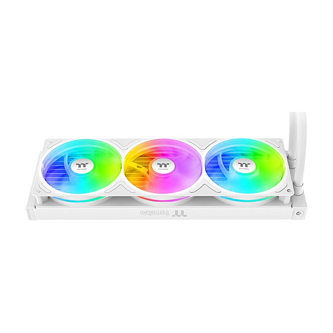 Thermaltake TH360 V3 ARGB. Typ: All-in-One-Flüssigkeitskühler, Lüfterdurchmesser: 12 cm, Rotationsgeschwindigkeit (min.): 500 RPM, Rotationsgeschwindigkeit (max.): 2500 RPM, Maximum Luftdruck: 3,86 mmH2O. Spannung: 12 V. Produktfarbe: Weiß