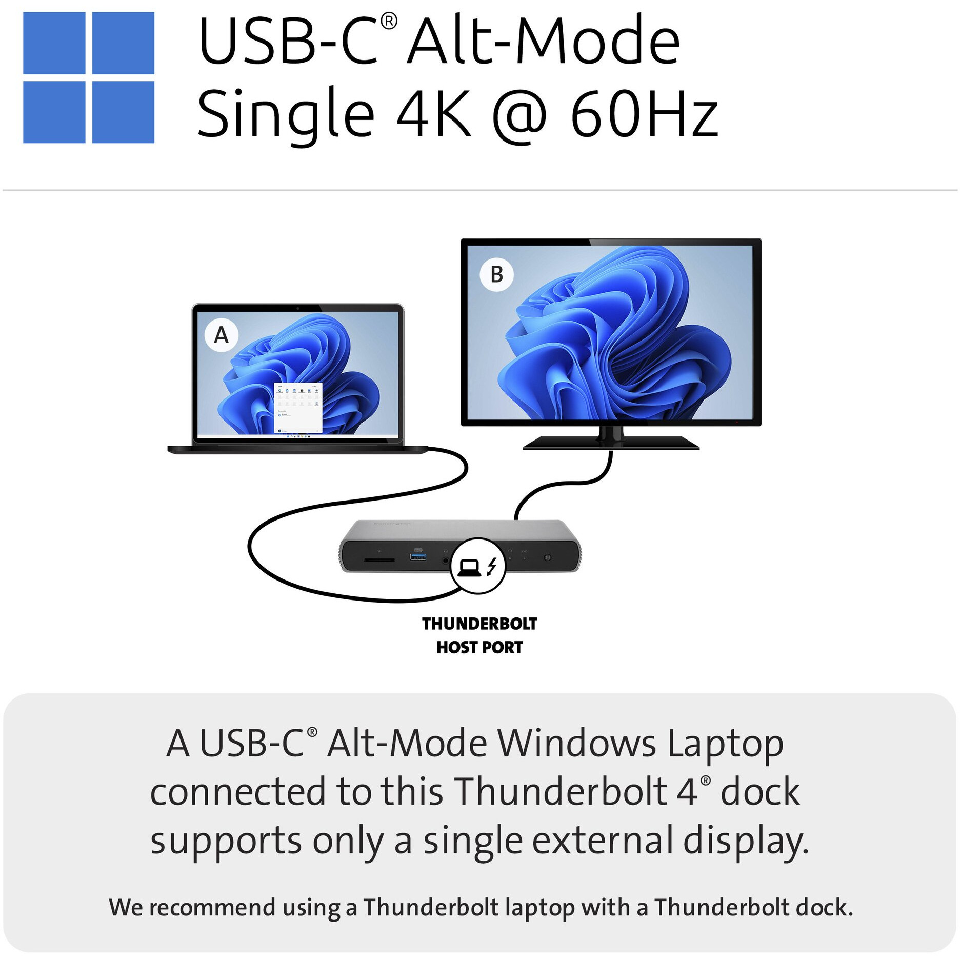 Die SD5760T Thunderbolt™ 4 Dual 4K Dockingstation ist ideal für professionelle Anwender, die zu Hause oder im Büro arbeiten. Sie unterstützt die neuesten MacBooks, Surface-Geräte und andere Thunderbolt™ 4-fähige Laptops mit allem, was Sie brauchen, um Ihre Produktivität heute und in Zukunft zu steigern. Das SD5760T bietet ein echtes Plug-and-Play-Erlebnis, ohne dass Treiber oder Downloads erforderlich sind. Es funktioniert mit Windows und macOS sowie mit Thunderbolt 4, Thunderbolt 3, USB4 und USB-C Geräten. Zu den flexiblen Anschlussoptionen gehört die Unterstützung von Single 8K @ 60 Hz (über den vorderen TB4-Anschluss) oder Dual 4K @ 60 Hz (über zwei HDMI-Anschlüsse oder einen TB4-Anschluss). Die SD5760T ist auf Produktivität ausgerichtet und unterstützt bis zu 96 W Power Delivery, bis zu 40 Gbit/s Datenübertragungsgeschwindigkeit, Daisy-Chaining und verfügt über 13 Anschlussmöglichkeiten. Inklusive Kensington DockWorks™ Software und drei Jahren Garantie.