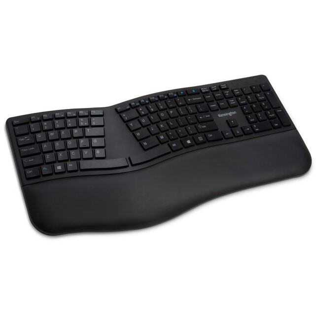 Dank ihres geteilten und schräg abfallenden Designs mit verstellbarer entgegengesetzter Neigung und integrierter Handgelenkauflage bringt die von Ergonomieexperten geprüfte kabellose Pro Fit® Ergo-Tastatur Ihre Hände in eine äußerst komfortable Arbeitshaltung. Zu den Features zählen die duale kabellose Technologie (2,4 GHz und Bluetooth 4.0 LE) mit AES 128-Bit-Verschlüsselung, die leisen Tastenanschläge, die spritzwassergeschützten Tasten, die F-Tasten für Shortcuts, die Feststelltaste, die Num-Taste und die Scroll-Taste, ein Stromsparschalter mit drei Modi und ein austauschbarer Receiver*. * Falls der Receiver verloren geht oder beschädigt wird, kaufen Sie einfach einen neuen, koppeln ihn mit Ihrer Maus und schon kann es wieder losgehen.