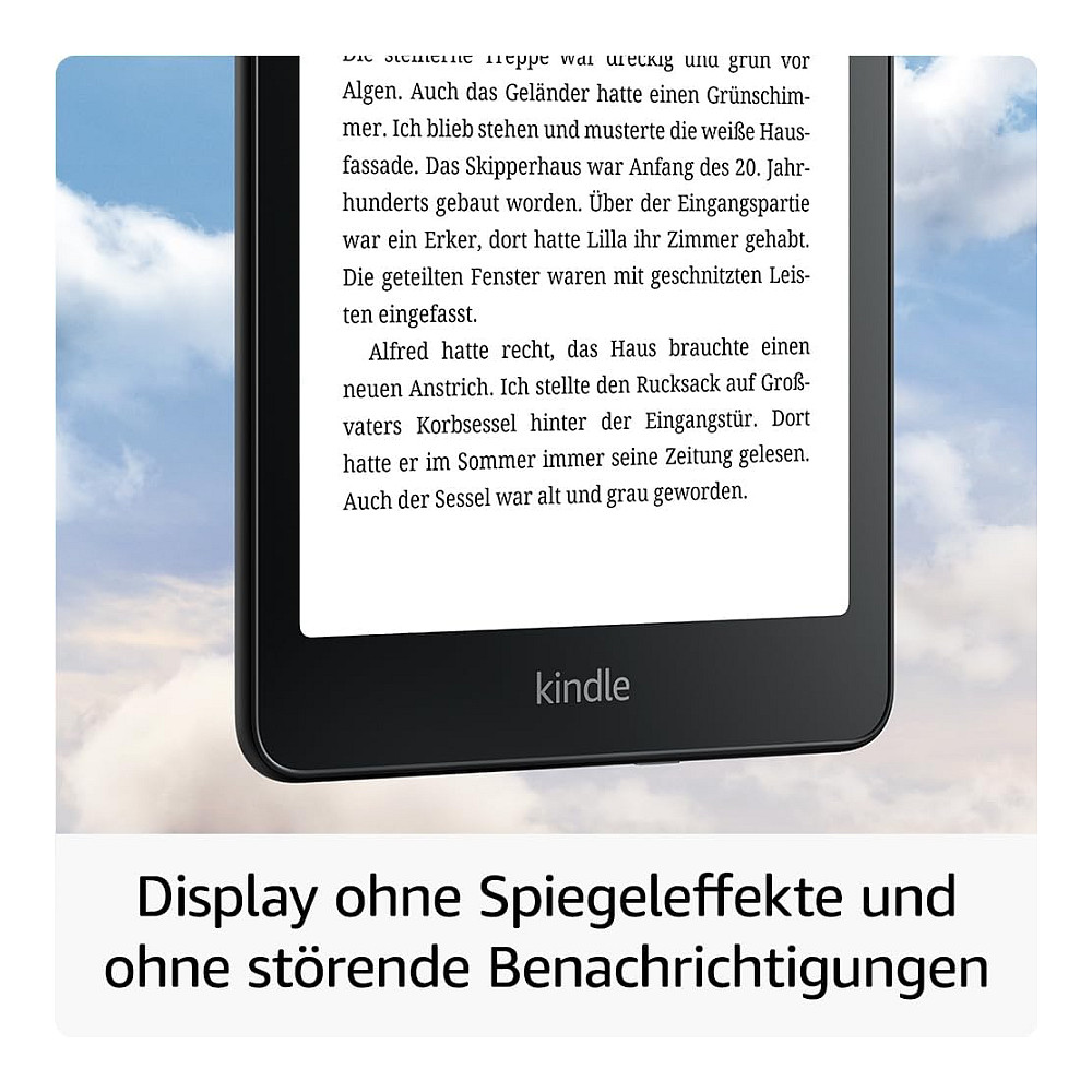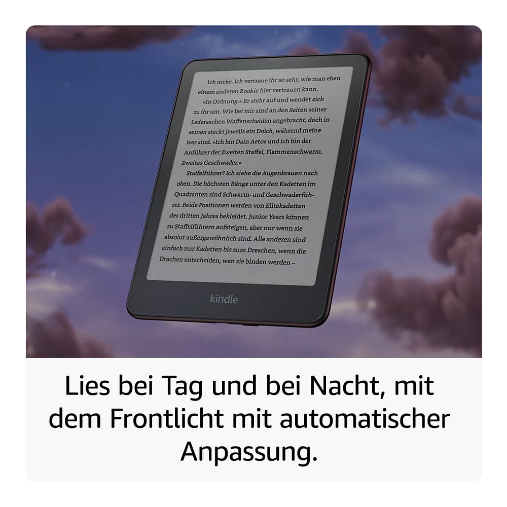 Mit dem Frontlicht mit automatischer Anpassung und dem Display ohne Spiegeleffekte sind deine Bücher sowohl nachts als auch bei Sonnenschein immer gut zu lesen.