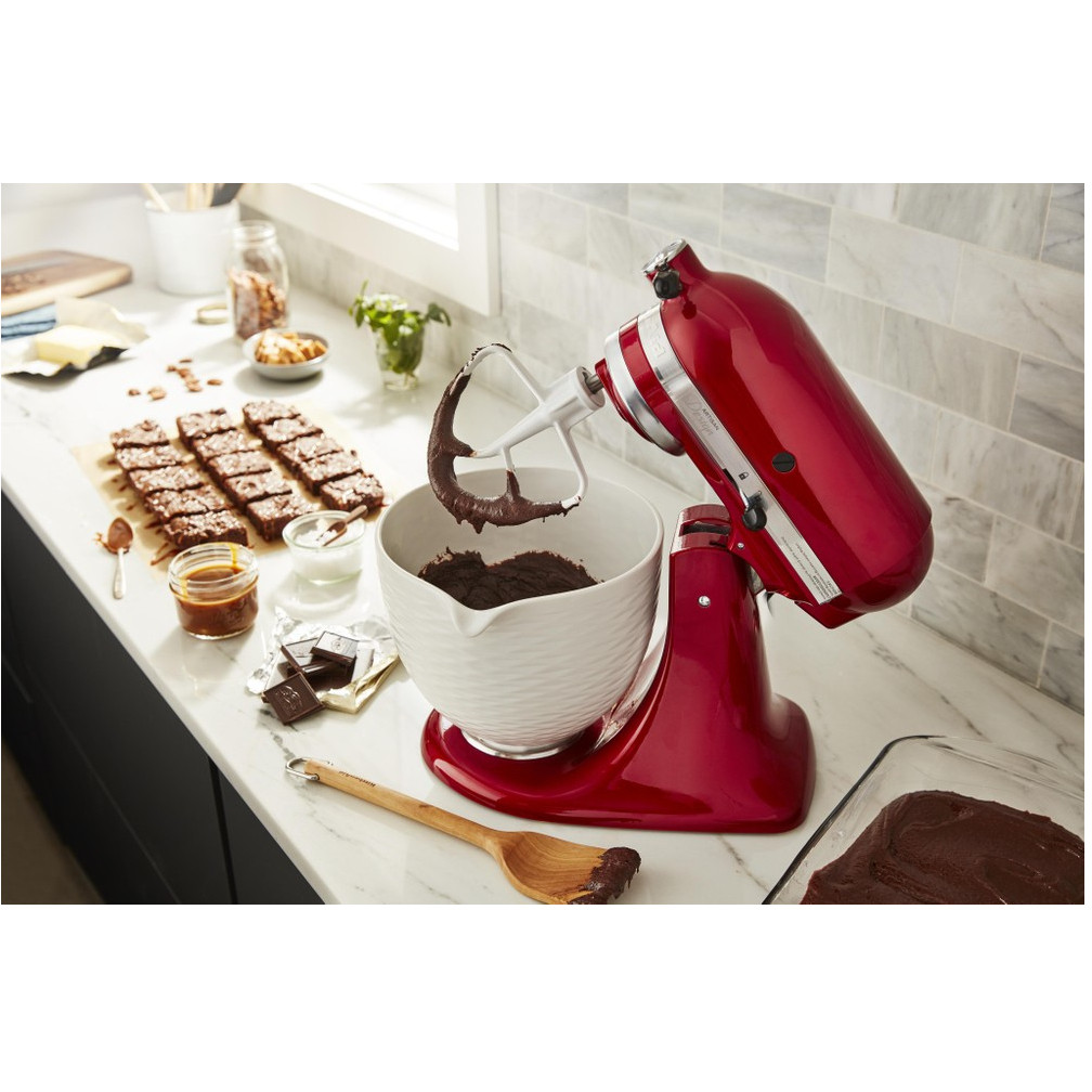 Und da die Küchenmaschine 5KSM175PS noch mehr zu bieten hat, erhalten Sie eine zusätzliche 3 l Schüssel. Dadurch können Sie in den verschiedenen Schüsseln mehrere Rezeptschritte gleichzeitig erledigen und ohne Reinigungspause weiterarbeiten. Die Küchenmaschine wird mit einem Flexi-Rührer geliefert, der die Schüssel beim Rühren abschabt. Dadurch wird alles sehr gründlich vermengt, selbst bei klebrigen Mischungen.