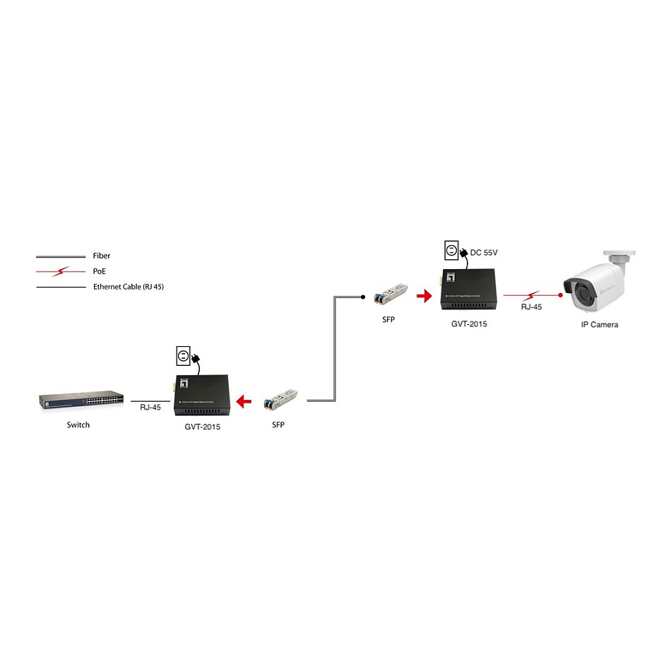 Der LevelOne GVT-2015 ist ein Single-Port, End-Span IEEE 802.3bt High Power over Ethernet Media-Konverter mit einem Gesamt PoE-Budget von 60 Watt. Er wurde speziell entwickelt, um den wachsenden Energie-Nachfrage von Netzwerkgeräten gerecht zu werden, wie PTZ (Schwenken, Neigen und Zoomen) Netzwerkkameras, PTZ Speed Dome, Farb-Touchscreen VoIP-Telefone, mehrkanalige (IEEE 802.11a / b / g / n/ ac/ ax) Wireless LAN Access Points und andere Netzwerkgeräte, die eine höhere Leistung benötigen um normal zu funktionieren. Ausgestattet mit einem SFP-Port für Gigabit SFP-Transceiver, ist er sowohl mit Multi Mode als auch mit Single Mode Fasern einsetzbar, je nach Wahl des Transceivers. Dank der hohen Power over Ethernet Leistung ist der GVT-2015 die ideale Lösung, um Daten und Energie direkt über die RJ45-Schnittstelle an Netzwerkgeräte zu liefern, ohne dass zusätzliche Steckdosen und elektrische Kabel installiert werden müssen.