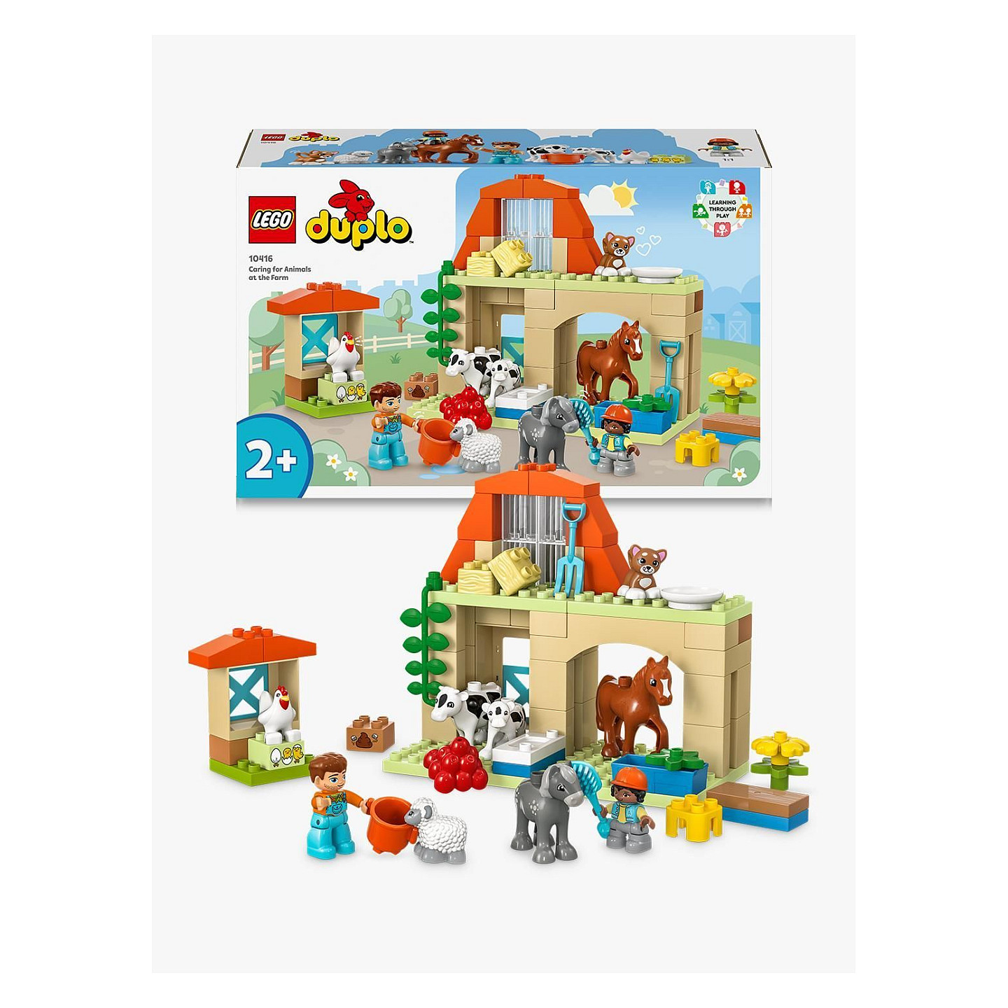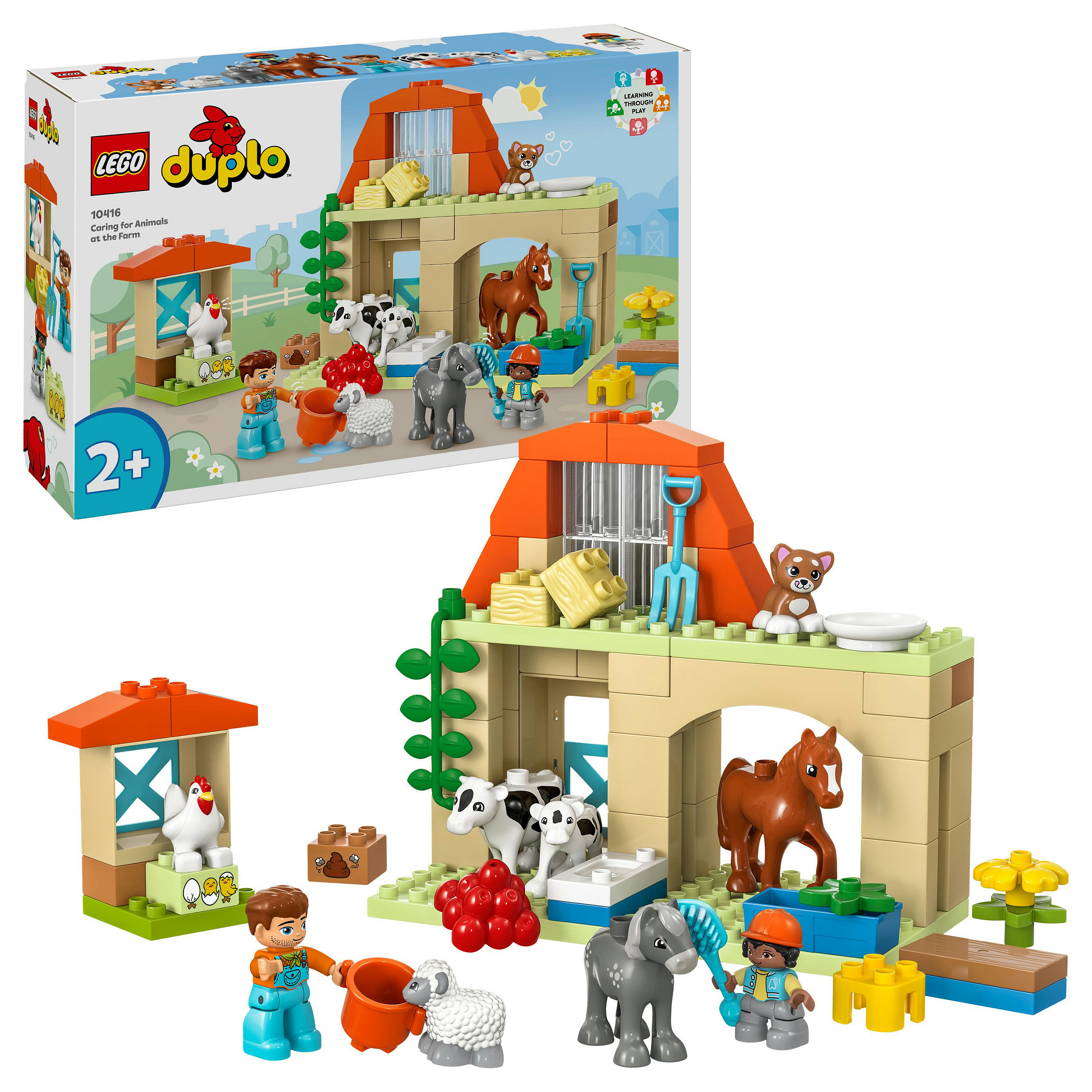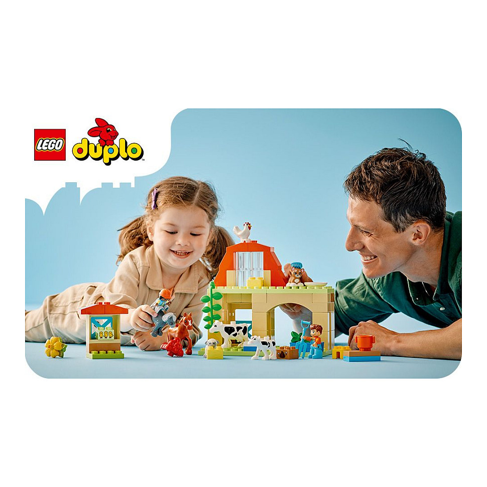 Kennst du ein Kleinkind, das Bauernhof-Spielsets liebt? Tierpflege auf dem Bauernhof (10416) ist das perfekte Geschenk für ganz junge Tierfreunde. Dieses Lernspielzeug für Kleinkinder ab 2 Jahren beinhaltet 8 LEGO® DUPLO® Tierfiguren – unter anderem ein Pferd, ein Schaf, eine Kuh und Hühner–, die jedes Kleinkind begeistern, das Spielzeuge zum Nachstellen des echten Lebens liebt, und das gern neue Freunde auf dem Bauernhof findet.