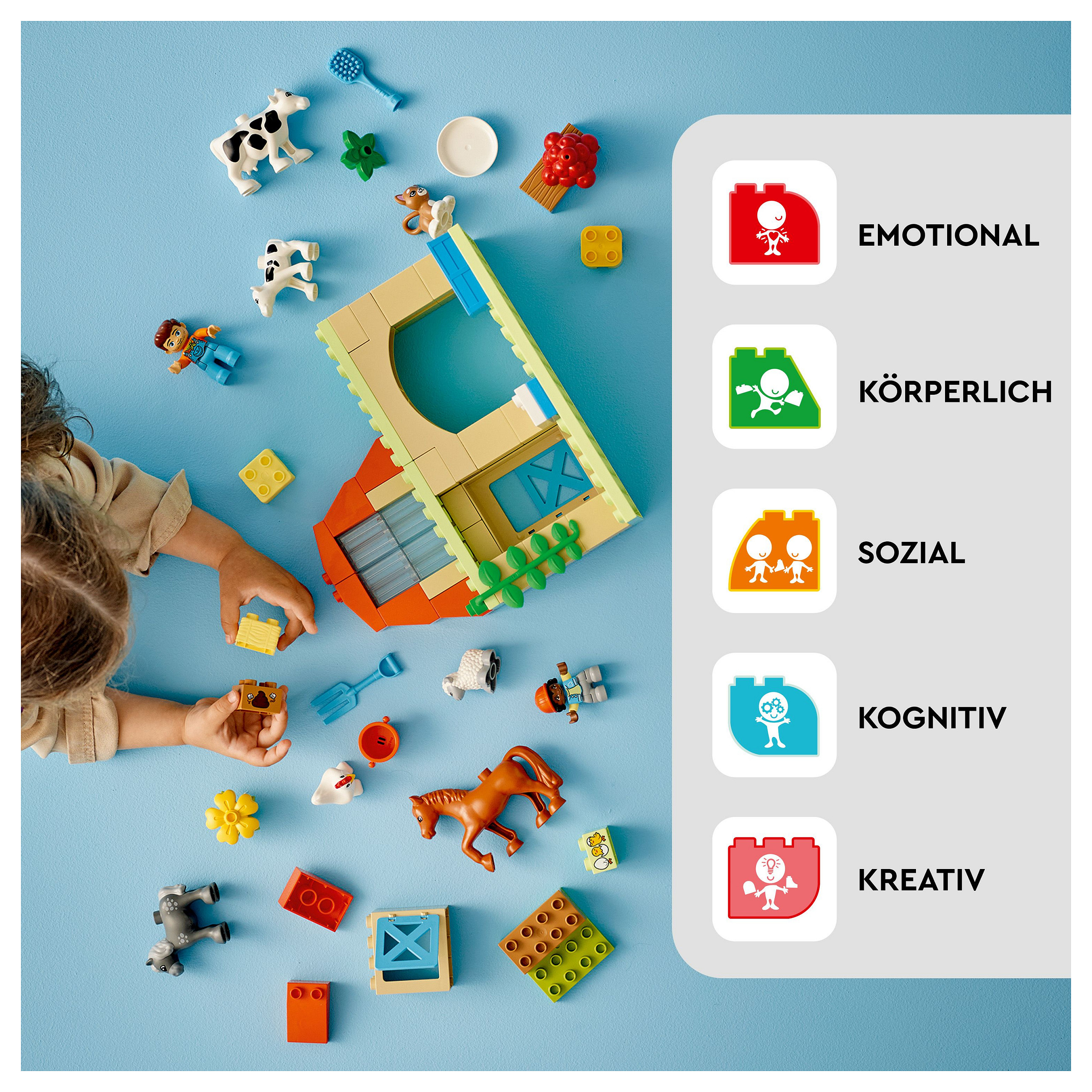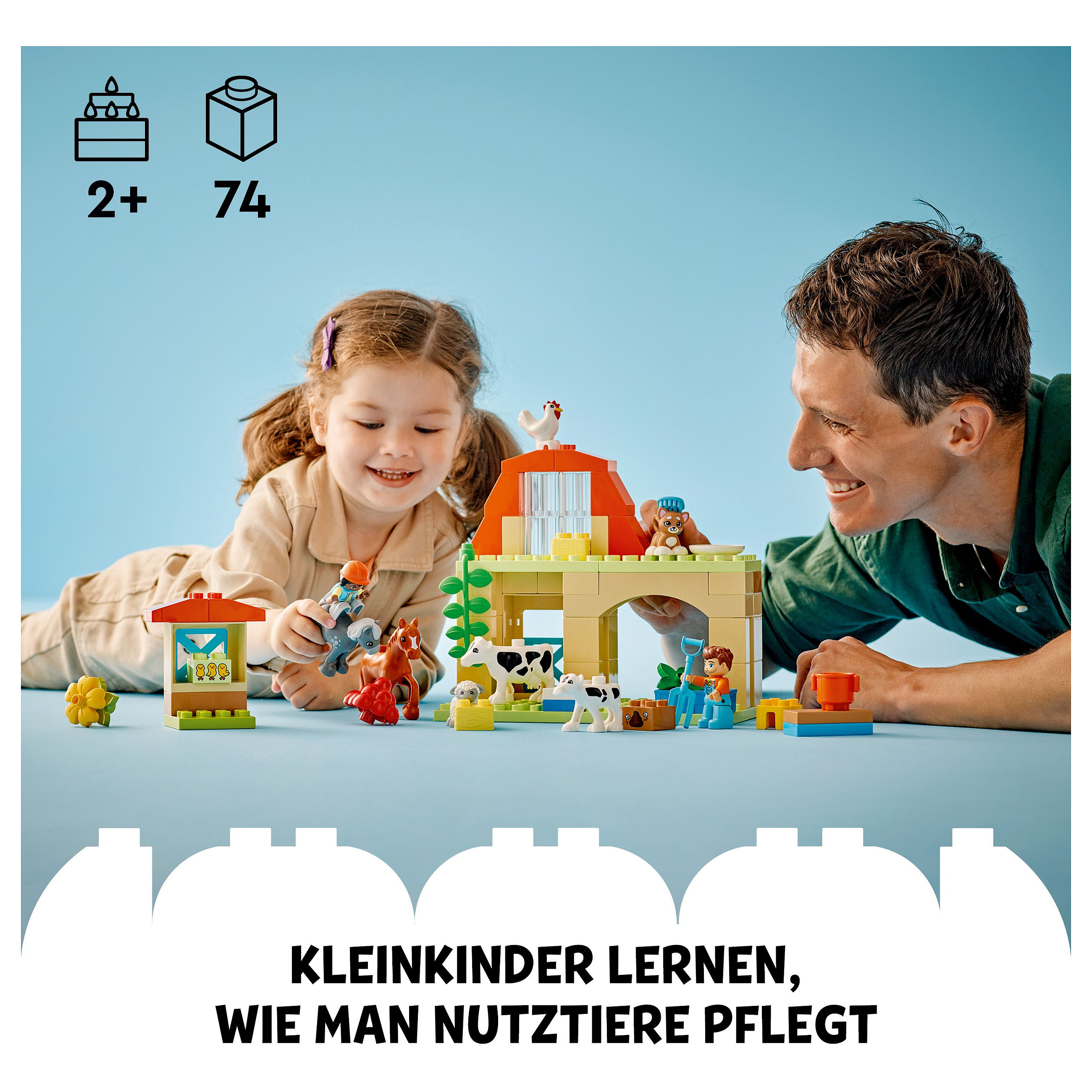 Lernspielzeug für Kinder ab 2 Jahren: LEGO® DUPLO® Town Tierpflege auf dem Bauernhof lässt Jungen und Mädchen in die Rolle eines fleißigen Bauern schlüpfen