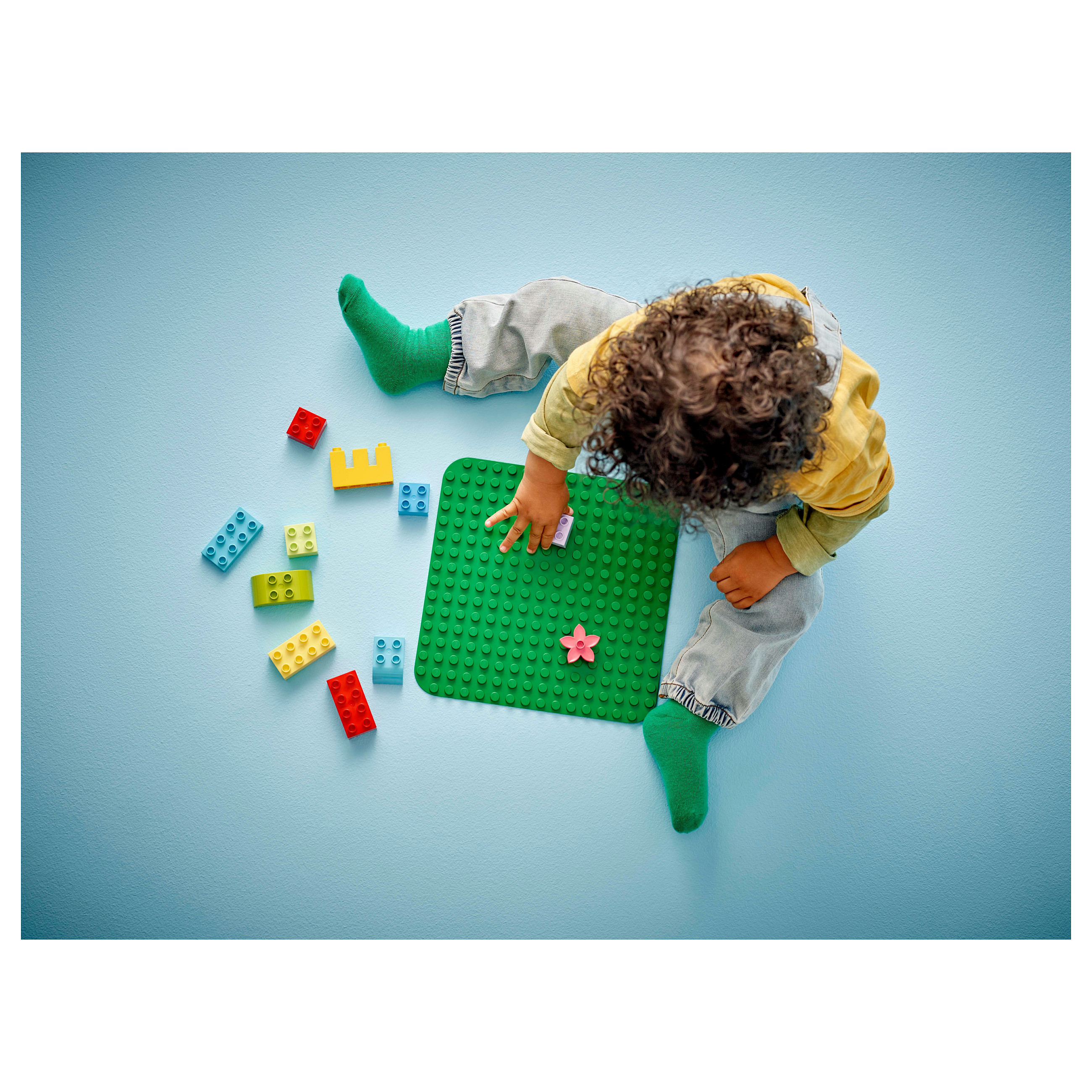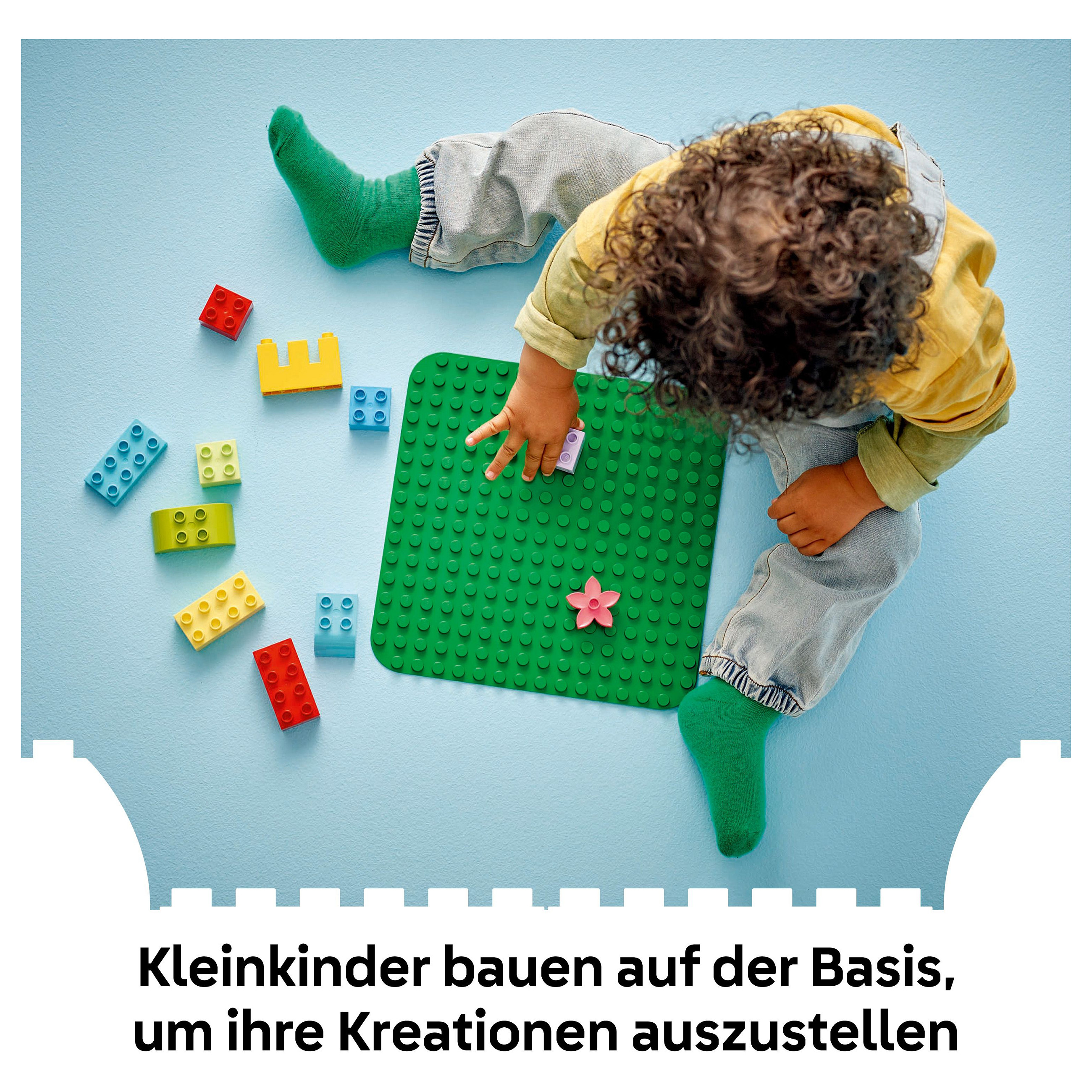 Die LEGO® DUPLO® Bauplatte in Grün (10460) dient Vorschulkindern ab 18 Monaten als perfekte Landschaft, auf der sie ihre fantasievollen Modelle aufbauen und ausstellen können.