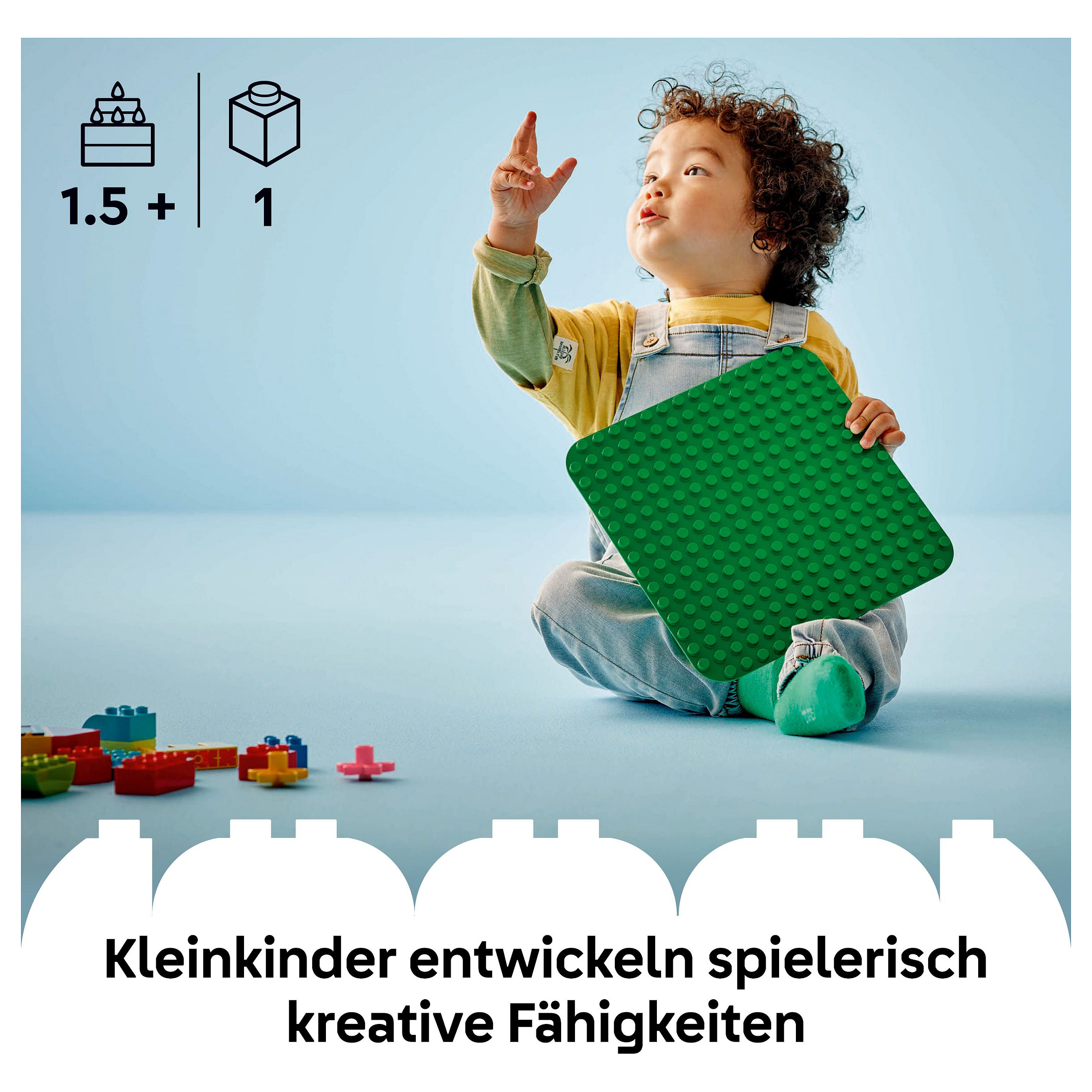Abmessungen: Die LEGO® DUPLO® Bauplatte in Grün ist 25 cm groß und lässt dein Kind kreative Modelle bauen, transportieren und ausstellen