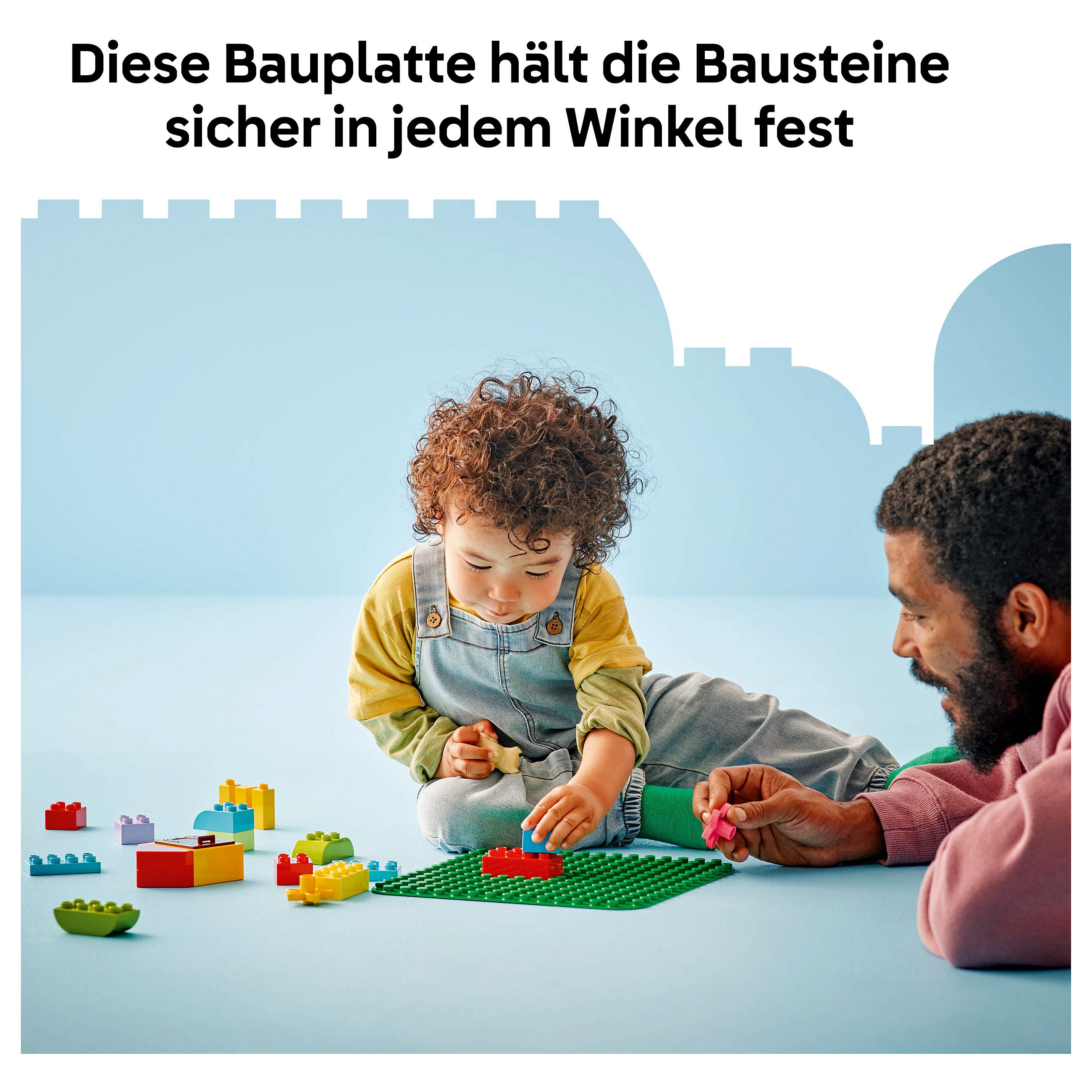 Fundament für die Modelle von Vorschulkindern: Die Bauplatte in Grün ist ein Bauspielzeug, das Vorschulkindern ab 18 Monaten als robustes Fundament für kreativen Spielspaß dient