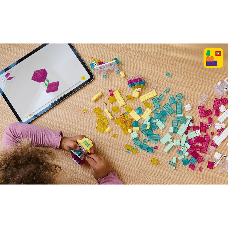 Farbenfrohe durchsichtige Bausteine: Zauberbox mit durchsichtigen Steinen ist ein LEGO® Set zum Bauen, Spielen und Ausstellen für kreative Kinder. Mädchen und Jungen ab 5 Jahren können viele faszinierende Fantasiemodelle erschaffen