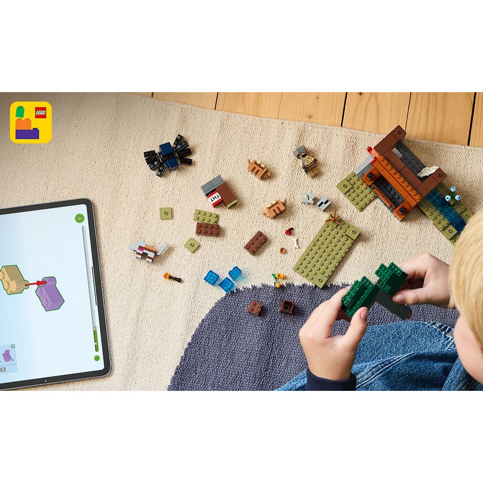 Das Set stellt eine Mine im Savannen-Biom dar. Mithilfe eines Hebels kann man TNT explodieren lassen, um einen Teil des Geländes wegzusprengen und kostbares Erz freizulegen. Zum Spielen laden auch eine Höhlenspinne, ein Wolf und 2 Gürteltiere ein, die Hornschild zur Fertigung einer Wolfsrüstung liefern. Neben der Mine strömt ein kleiner Fluss, und es gibt auch einen Lavafall. Man kann das Modell mühelos umgestalten, um neue Abenteuer darzustellen. Die LEGO Builder App bietet zusätzlichen digitalen Bauspaß, denn sie lässt Kinder 3D-Modellansichten auf den eigenen Smartphones vergrößern und drehen.