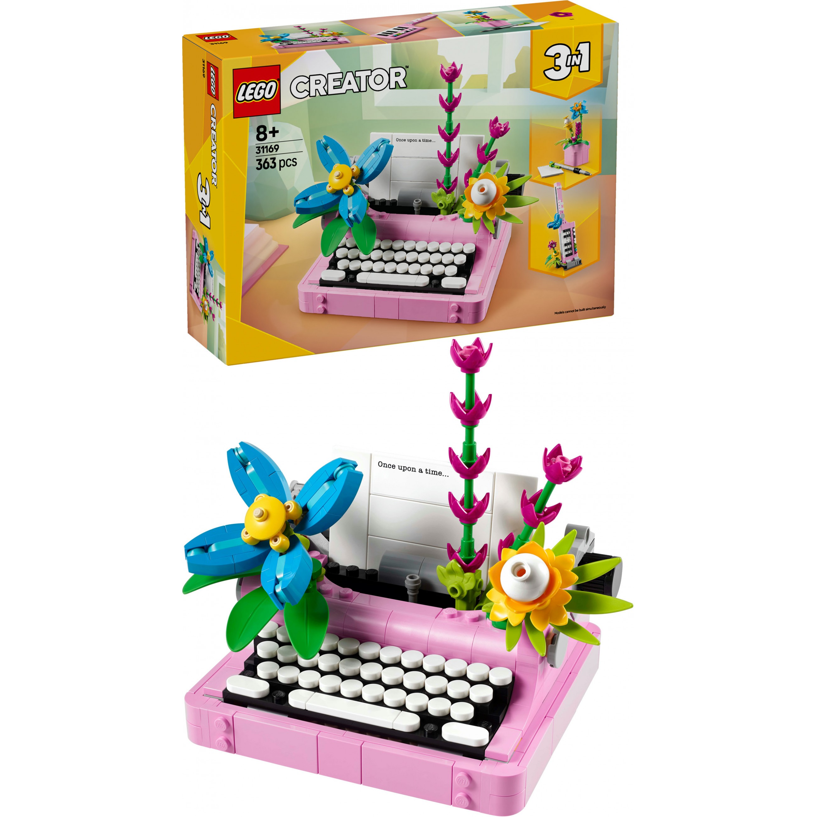 3 LEGO® Blumenmodelle in 1 Box: Die Creator Schreibmaschine mit Blumen aus diesem 3-in-1-Spielset lässt Kinder ab 8 Jahren 3 verschiedene Modelle aus denselben LEGO Steinen bauen und immer wieder umgestalten