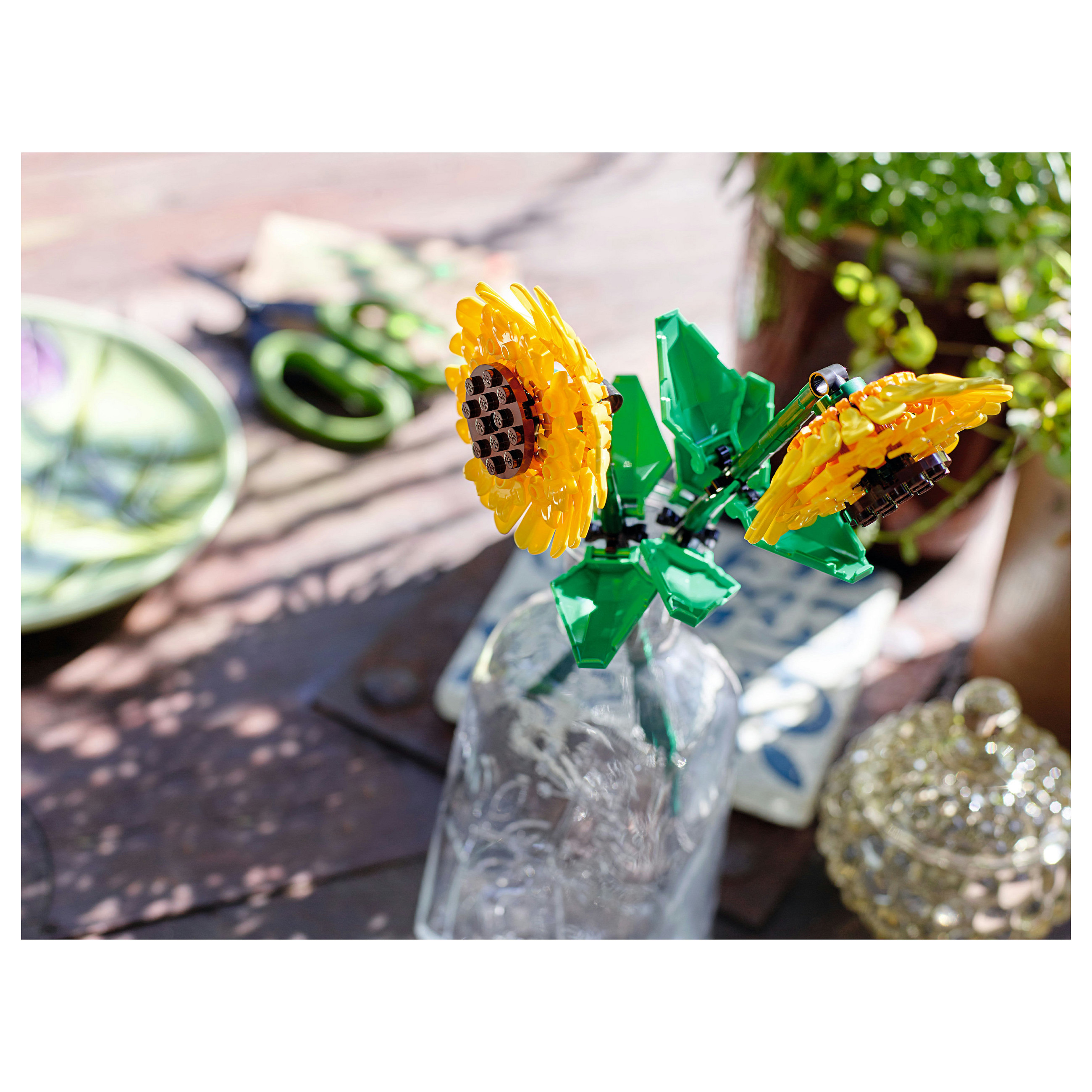 Sonnenblumen zum Ausstellen: Das LEGO® Bauset „Sonnenblumen“ (40524) lässt dich ein attraktives Ausstellungsstück für jedes Zimmer erschaffen. Beinhaltet 2 Sonnenblumenblüten mit anpassbaren grünen Stängeln und Blättern