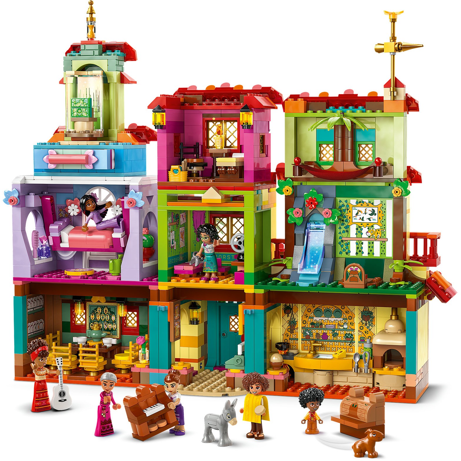 Dieses Bauset ist eine tolle Geschenkidee. Die LEGO ǀ Disney Spielfiguren Mirabel, Abuela, Isabela, Dolores, Luisa und Camilo, die LEGO ǀ Disney Mikro-Spielfigur Antonio sowie 2 LEGO ǀ Disney Tierfiguren laden zum Spielen ein. Kinder und Erwachsene können sich an zahlreichen Details erfreuen. Für noch mehr Spielspaß kann man das Haus aber auch mit anderen separat erhältlichen LEGO Bausets für Kinder oder mit LEGO ǀ Disney Bauspielzeugen kombinieren.