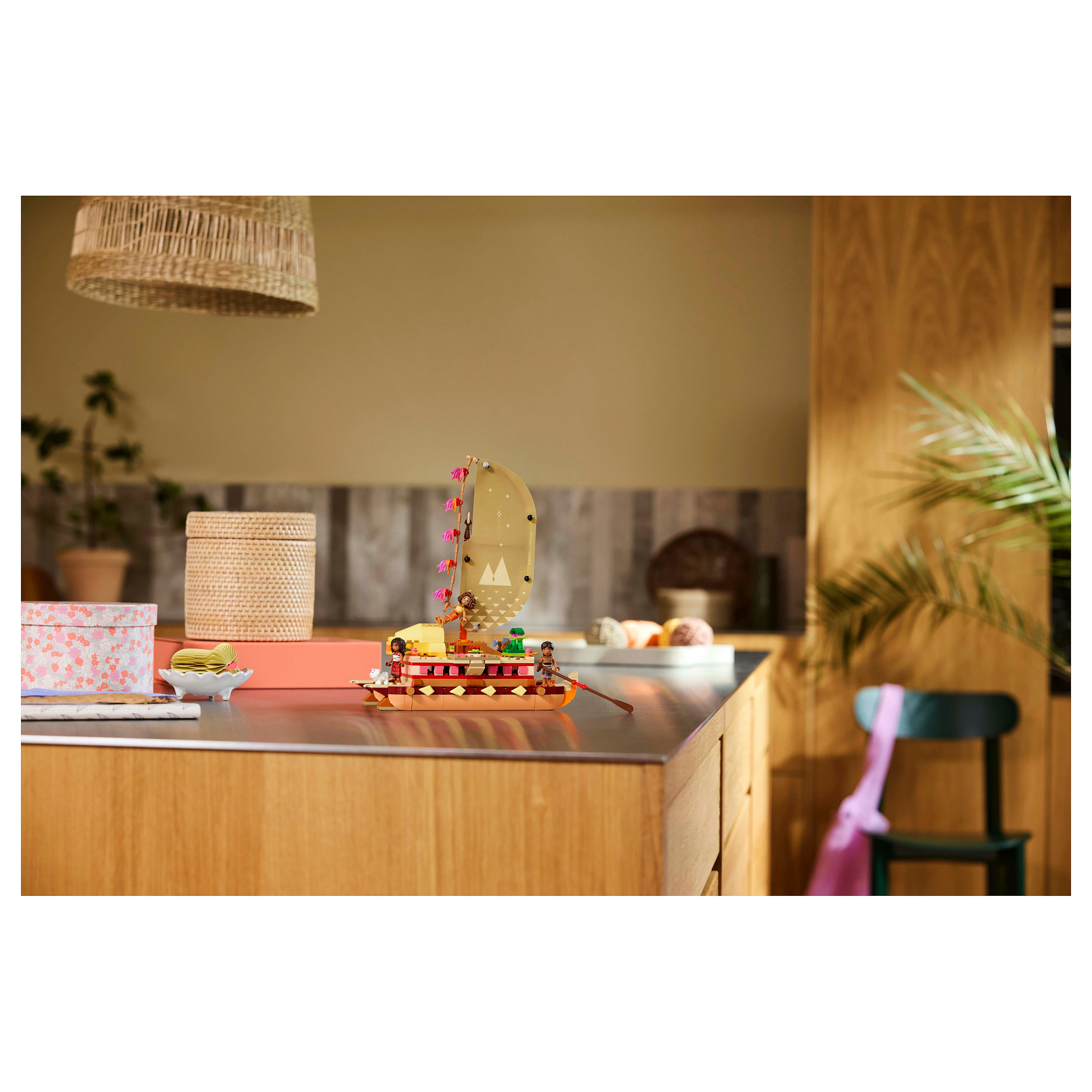 LEGO® ǀ Disney Vaianas Abenteuerfloß (43270) ist ein Bau- und Spielset mit einem coolen Modell für junge Geschichtenerzähler ab 6 Jahren. Das Zweirumpfboot aus diesem Bauset hat ein bedrucktes Stoffsegel, ein lei hulu-Seil, um die Windrichtung festzustellen, ein abnehmbares Oberdeck mit Wohnbereich unter Deck sowie ein kleines Feuer und Schlafplätze an Deck. Jede Menge faszinierende Elemente laden sofort zum Spielen ein, genau wie die 3 LEGO ǀ Disney Spielfiguren Vaiana, die Schiffsbauerin Loto und der Ruderer Moni (der gerne Geschichten erzählt) und das LEGO ǀ Disney Schwein Pua.