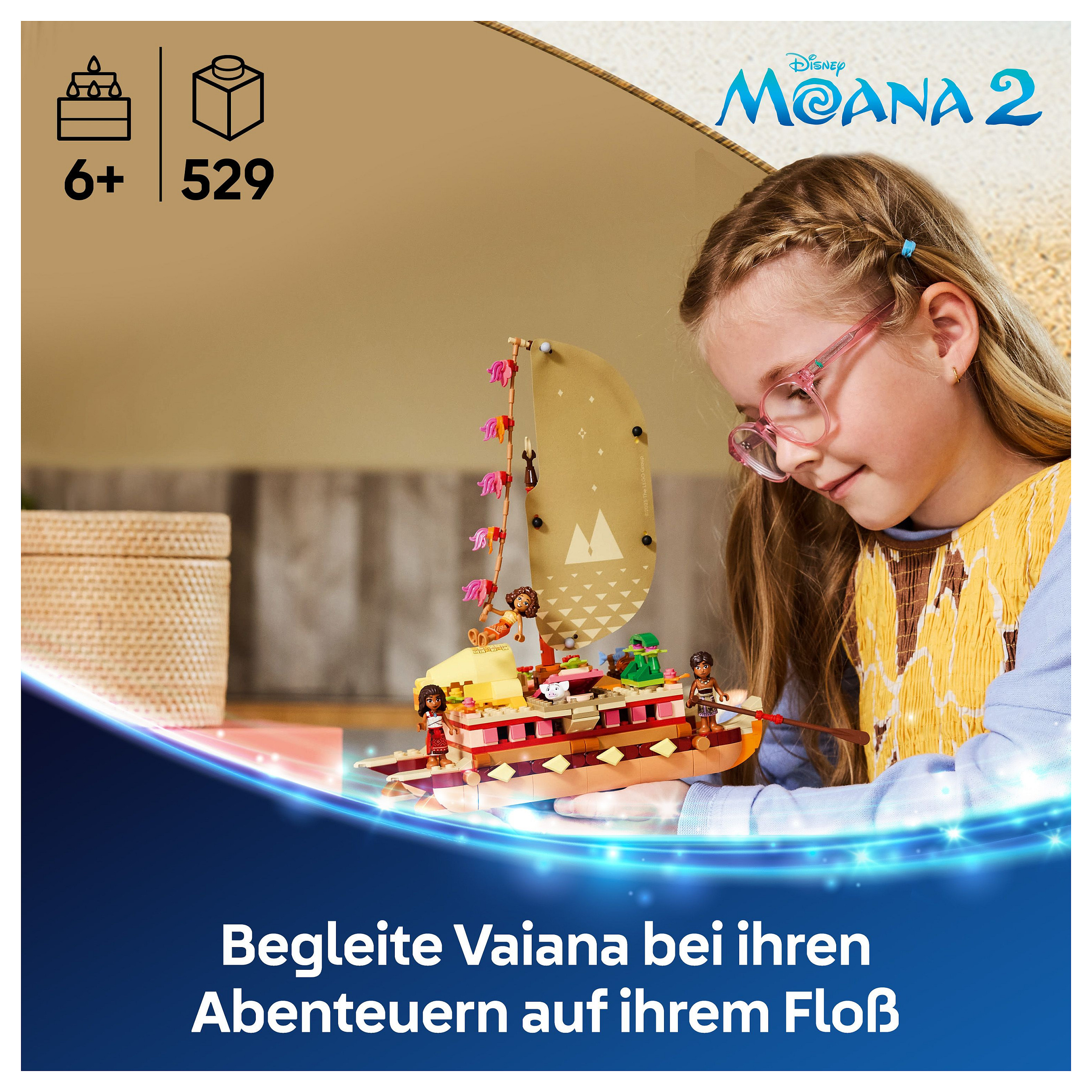 Baubares Spielzeugboot zum Disney Film Vaiana 2: Überrasche Mädchen, Jungen und Fans ab 6 Jahren mit Vaianas Abenteuerfloß. Das Bau- und Spielset inspiriert Kinder zu vielen fantasievollen Geschichten und eigenen Abenteuern