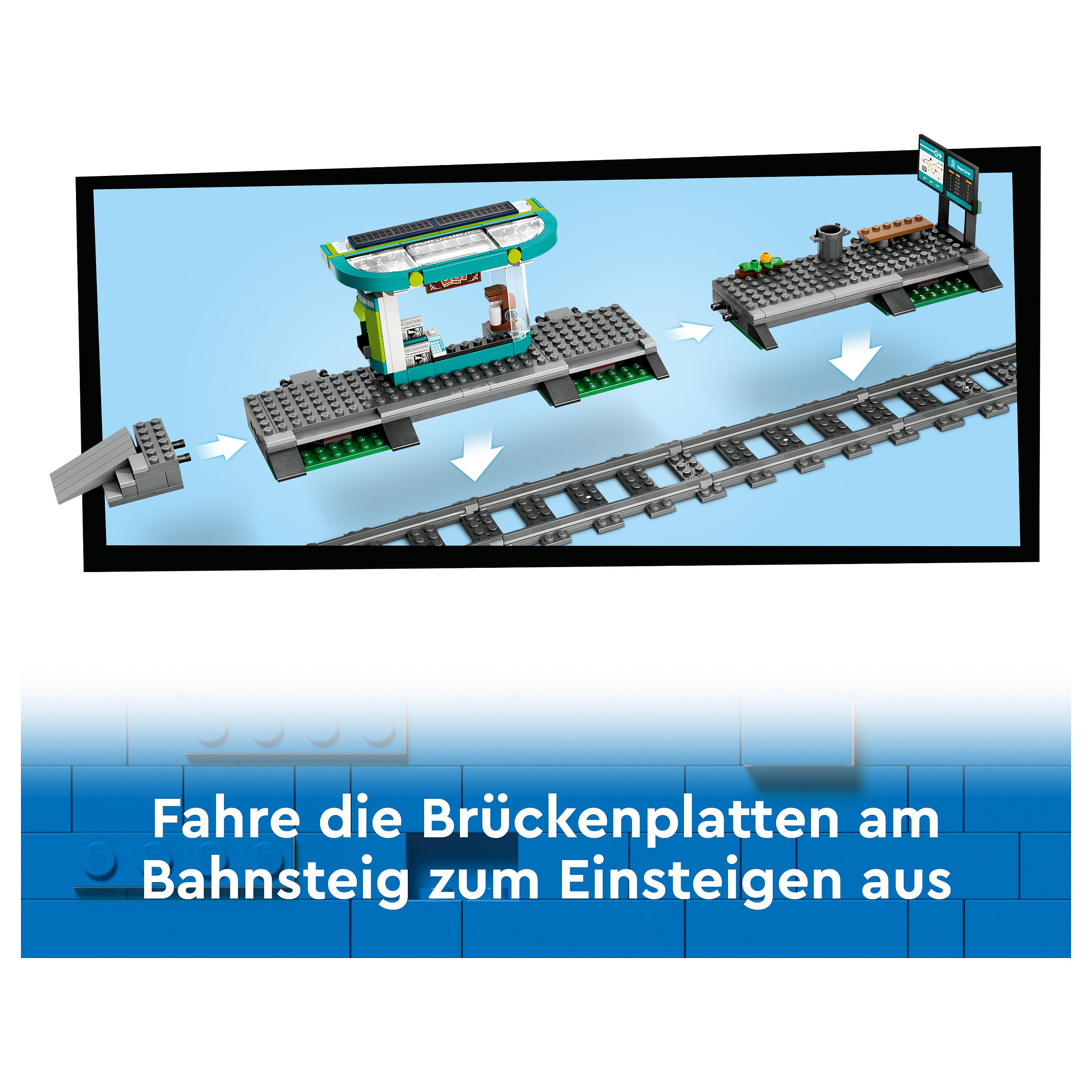 Inhalt der Box: Dieses LEGO® City Spielset beinhaltet alles, was Kinder brauchen, um eine Spielzeug-Straßenbahn mit Bahnsteig und Coffee-Shop zu bauen, sowie 6 Minifiguren und einen Blindenhund