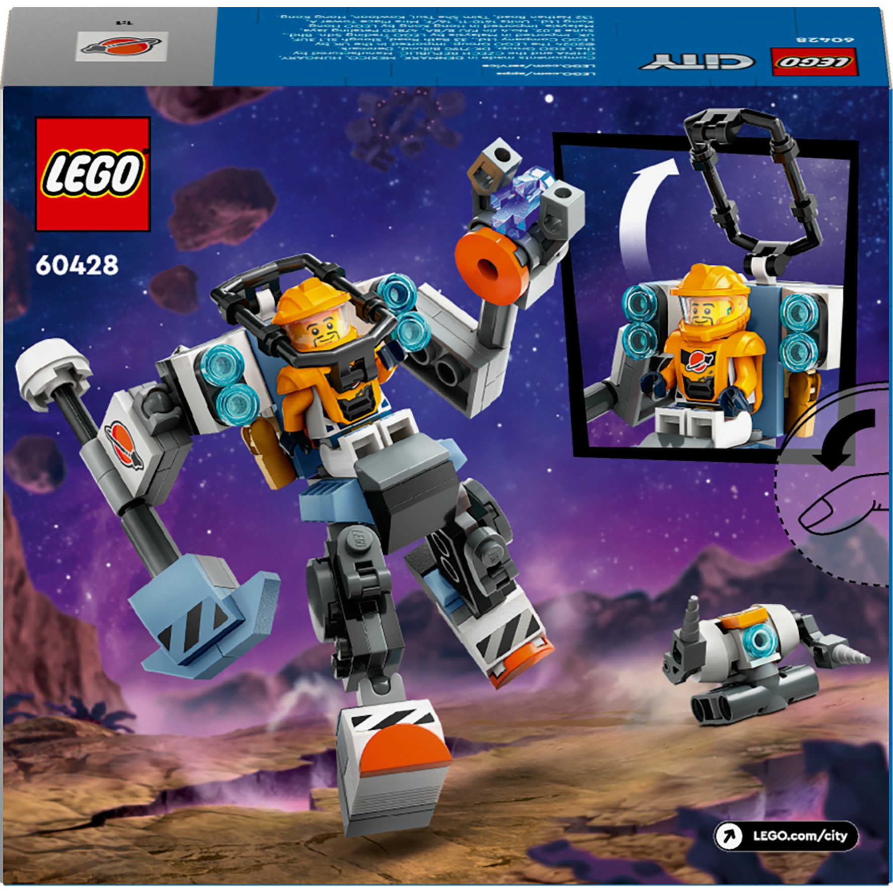 Spielzeug-Mech für Kinder ab 6 Jahren: Für futuristische Spielerlebnisse beinhaltet dieses LEGO® City Weltraum-Set einen Mech mit Hammer und Greifklaue an den Armen, Pilotencockpit für eine Minifigur und großen Füßen zum Erkunden neuer Welten