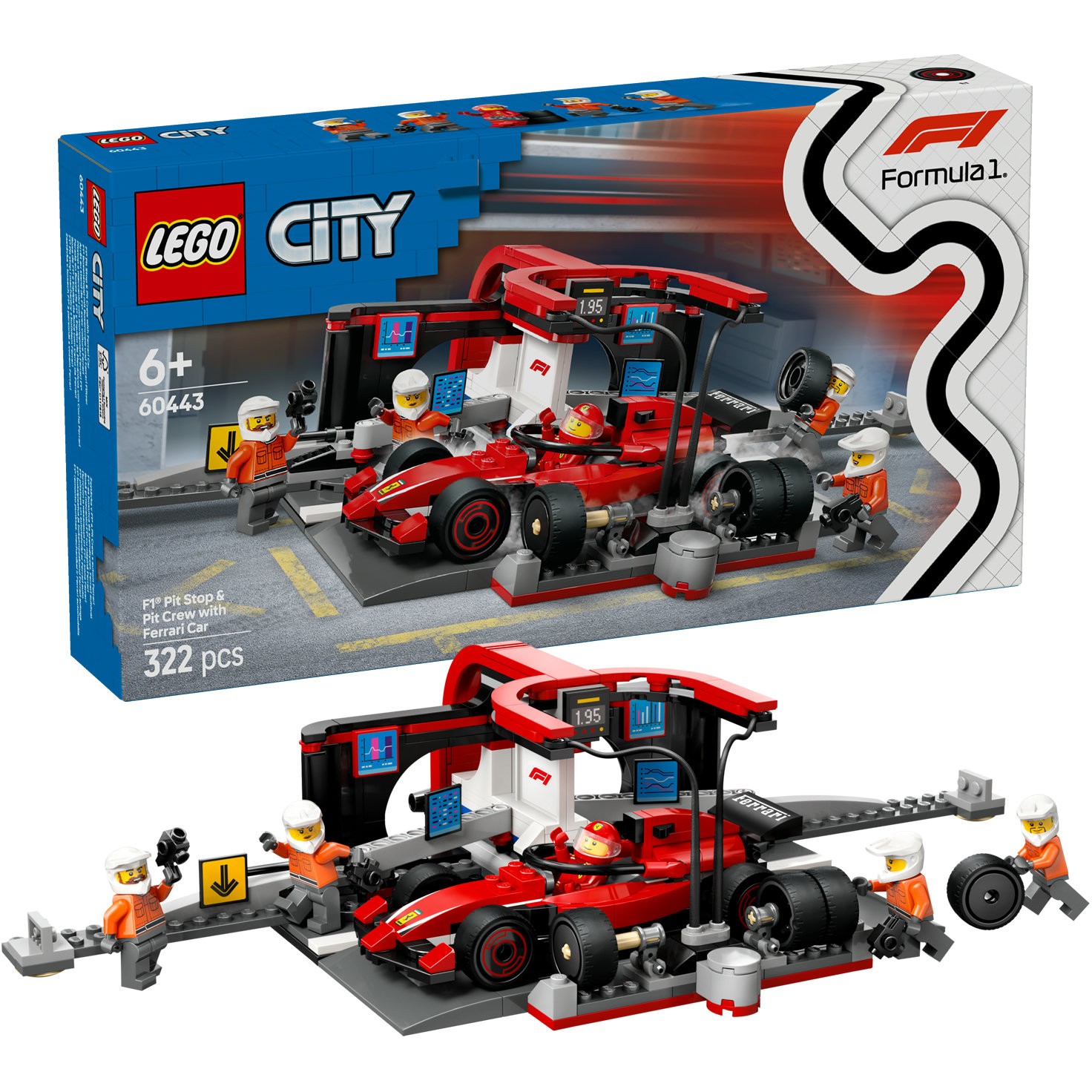 LEGO® City F1® Boxenstopp mit Boxencrew und Ferrari Flitzer (60443) ist ein Bau- und Spielset, das Kinder ab 6 Jahren beim Spielen den Nervenkitzel echter Rennen erleben lässt. Dieses Set beinhaltet alles, was Kinder für blitzschnelle Boxenstopps brauchen: frische Slicks, Schlagschrauber und eine Boxencrew, die durch Umlegen eines Schalters in die richtige Position für einen blitzschnellen Reifenwechsel gebracht wird. Ein Formel 1® Ferrari Rennauto und 5 Minifiguren (1 Rennfahrer und 4 Mechaniker) lassen junge Motorsportfans spannende Boxenstopps darstellen.