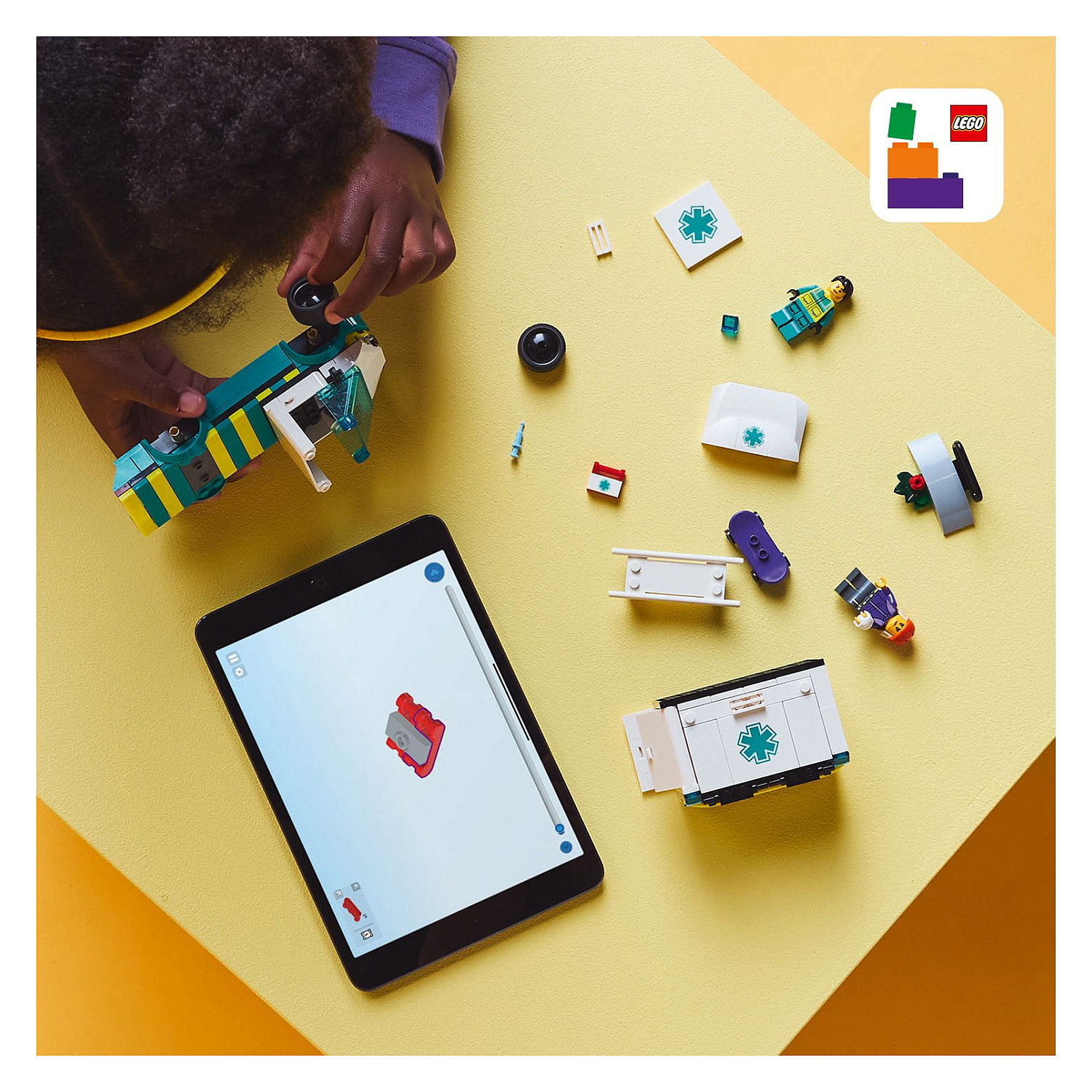 Eine Schritt-für-Schritt-Bauanleitung für den Rettungswagen liegt dem Bauset bei. In der LEGO Builder App ist aber auch eine 3D-Anleitung verfügbar. In der App können Kinder Spielsets erkunden und speichern, den eigenen Baufortschritt verfolgen und beim Bauen Modellansichten vergrößern, drehen und aus jedem Winkel betrachten.