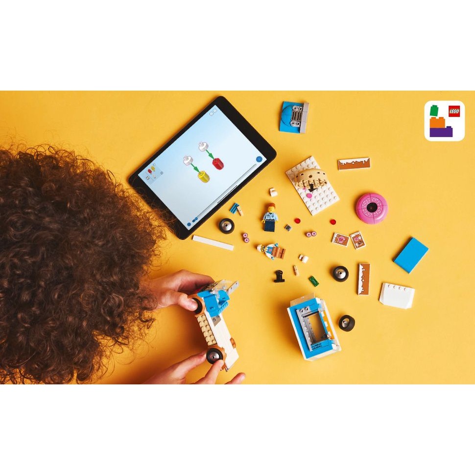 Eine Bauanleitung für den mobilen LEGO Donut-Laden liegt bei. Und in der LEGO Builder App können Kinder Sets erkunden und speichern, ihren Baufortschritt verfolgen und die Modelle beim Bauen vergrößern und drehen, um sie aus jedem Winkel zu betrachten.