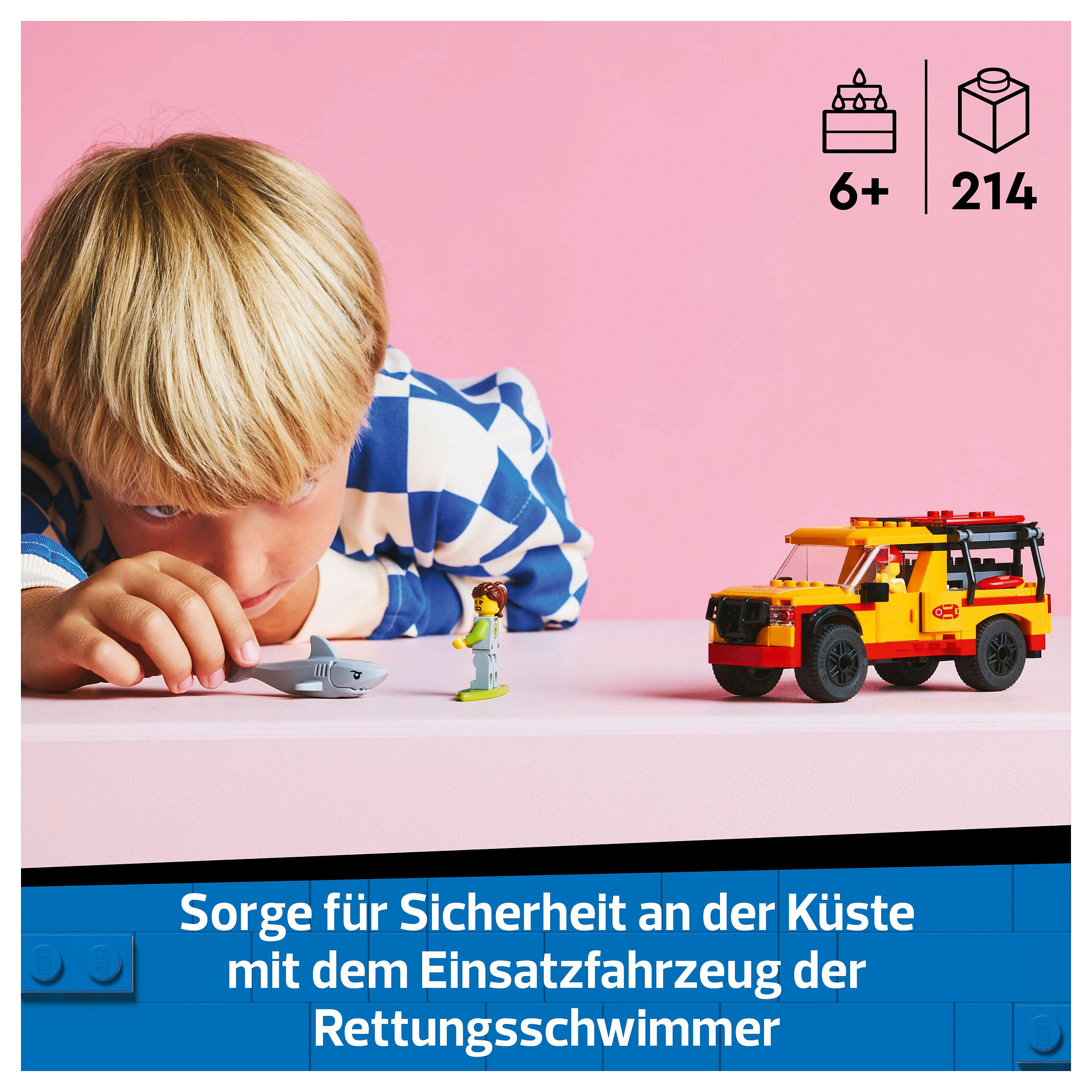 Spielset mit Rettungsfahrzeug: Das LEGO® City Einsatzfahrzeug der Rettungsschwimmer lässt Jungen und Mädchen ab 6 Jahren spannende Abenteuer am Strand darstellen