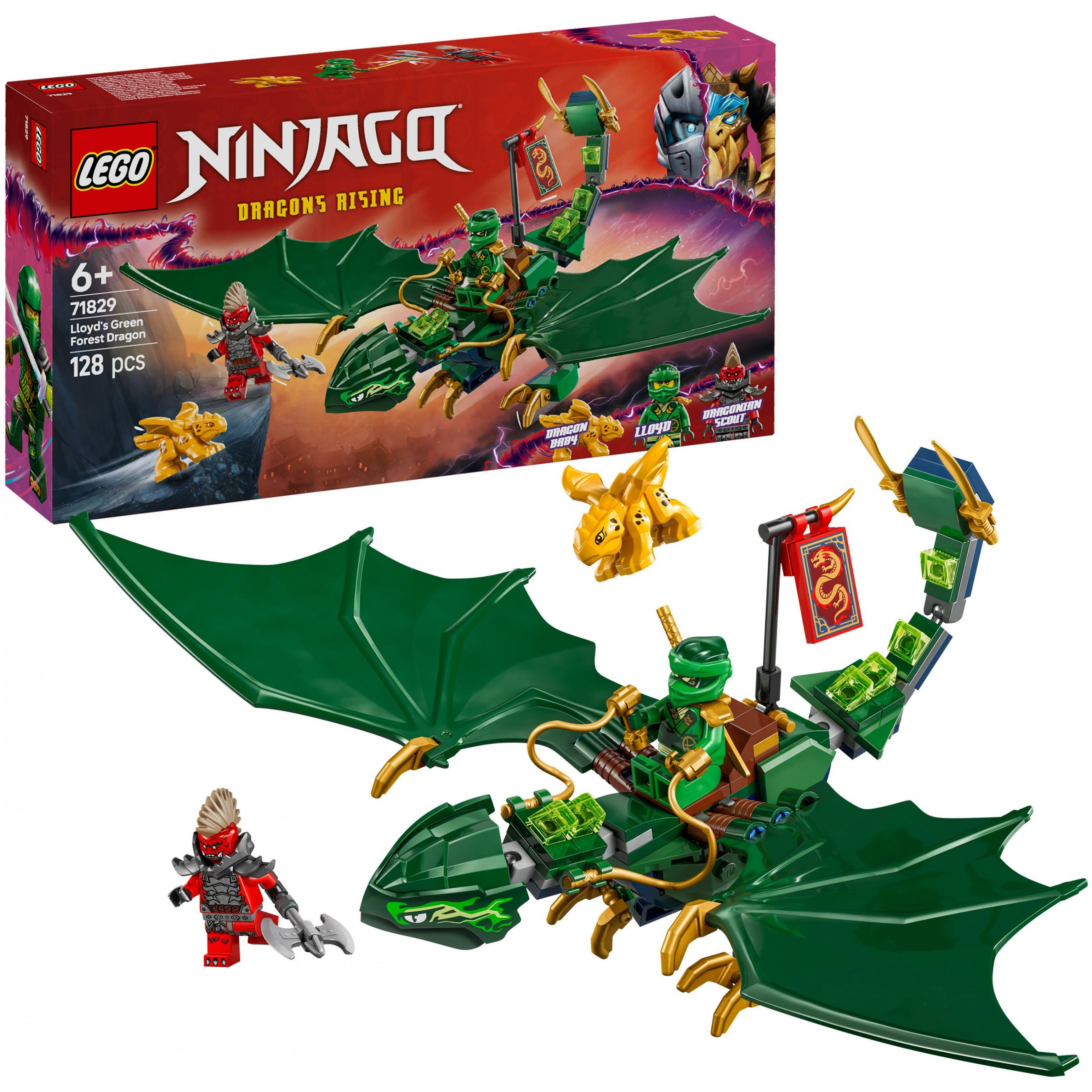 Lloyds grüner Walddrache (71829) ist ein Bau- und Spielset, mit dem Jungen und Mädchen ab 6 Jahren packende Actionszenen in der Luft aus der 3. Staffel der TV-Serie NINJAGO® Aufstieg der Drachen nachstellen können. Das Set beinhaltet einen imposanten Spielzeugdrachen, der Schwanz, Hals, Beine, Flügel und Hände bewegen kann. Der Drache trägt einen Sattel auf dem Rücken, damit eine Minifigur auf ihm reiten kann.