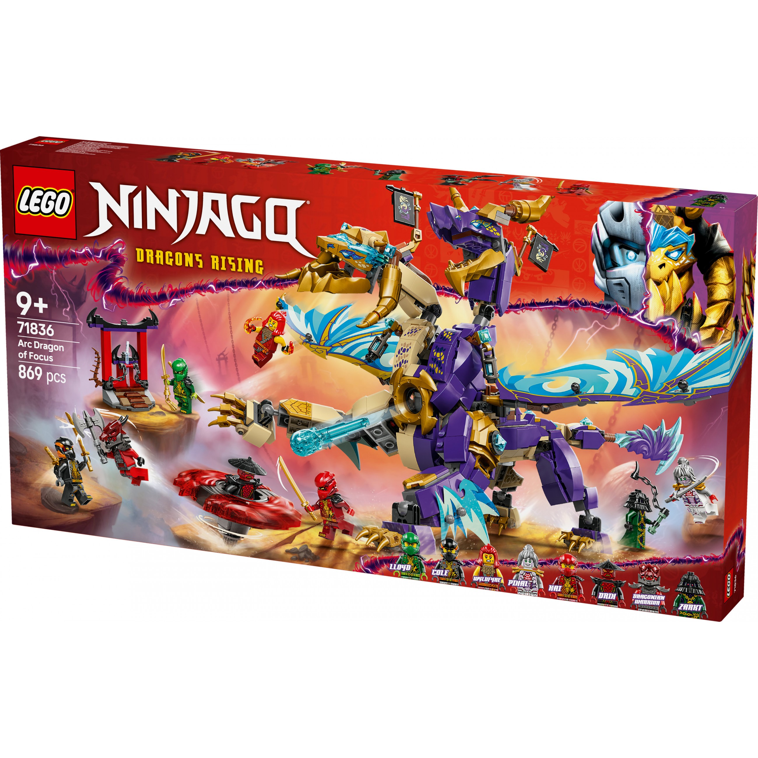 Der LEGO® NINJAGO® Lichtbogendrache (71836) lässt Jungen und Mädchen ab 9 Jahren legendäre Actionszenen aus der 3. Staffel der TV-Serie NINJAGO Aufstieg der Drachen nachstellen. Das Bau- und Spielset beinhaltet einen 2-köpfigen Drachen, der Schwanz, Kopf, Hals, Kiefer, Beine, Füße und Klauen bewegen kann. Kinder können den Shooter in seiner Brust aktivieren und seine großen Folienflügel mithilfe des Hebels am Rücken vor und zurück schwenken.