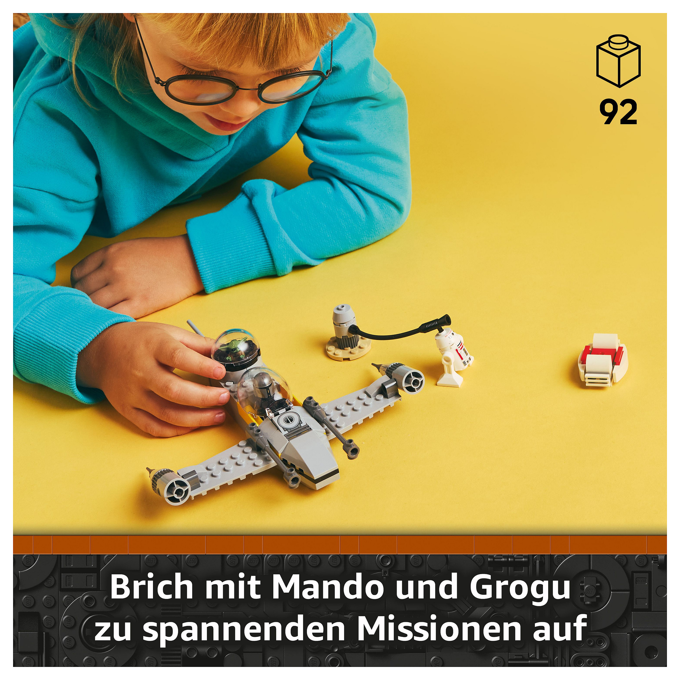 Mandos und Grogus N-1 Starfighter ist ein tolles Bauspielzeug: Dieses faszinierende Starterset bringt Kindern ab 4 Jahren bei, wie man Modelle aus LEGO® Steinen baut und dann Geschichten mit den Helden aus Star Wars: The Mandalorian darstellt