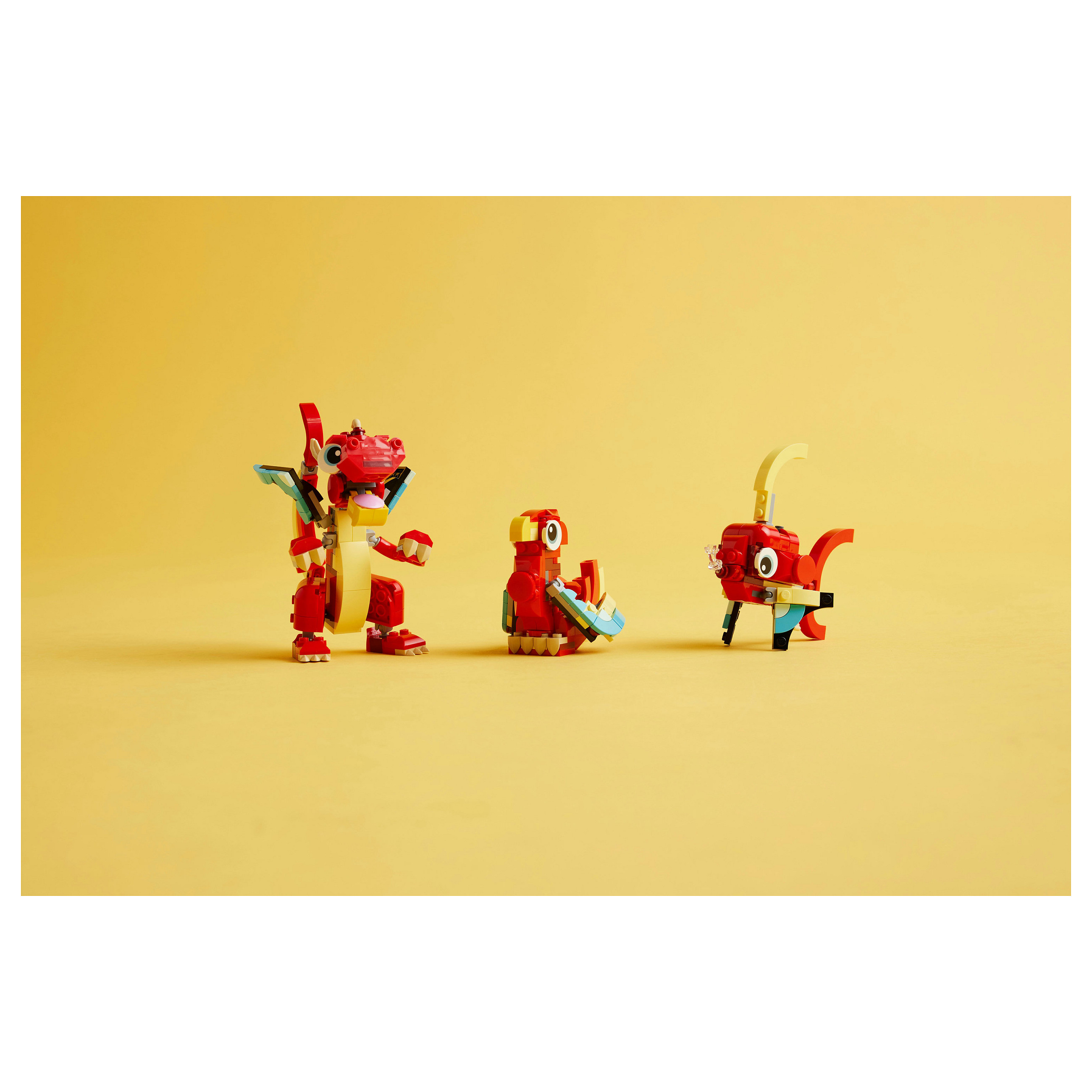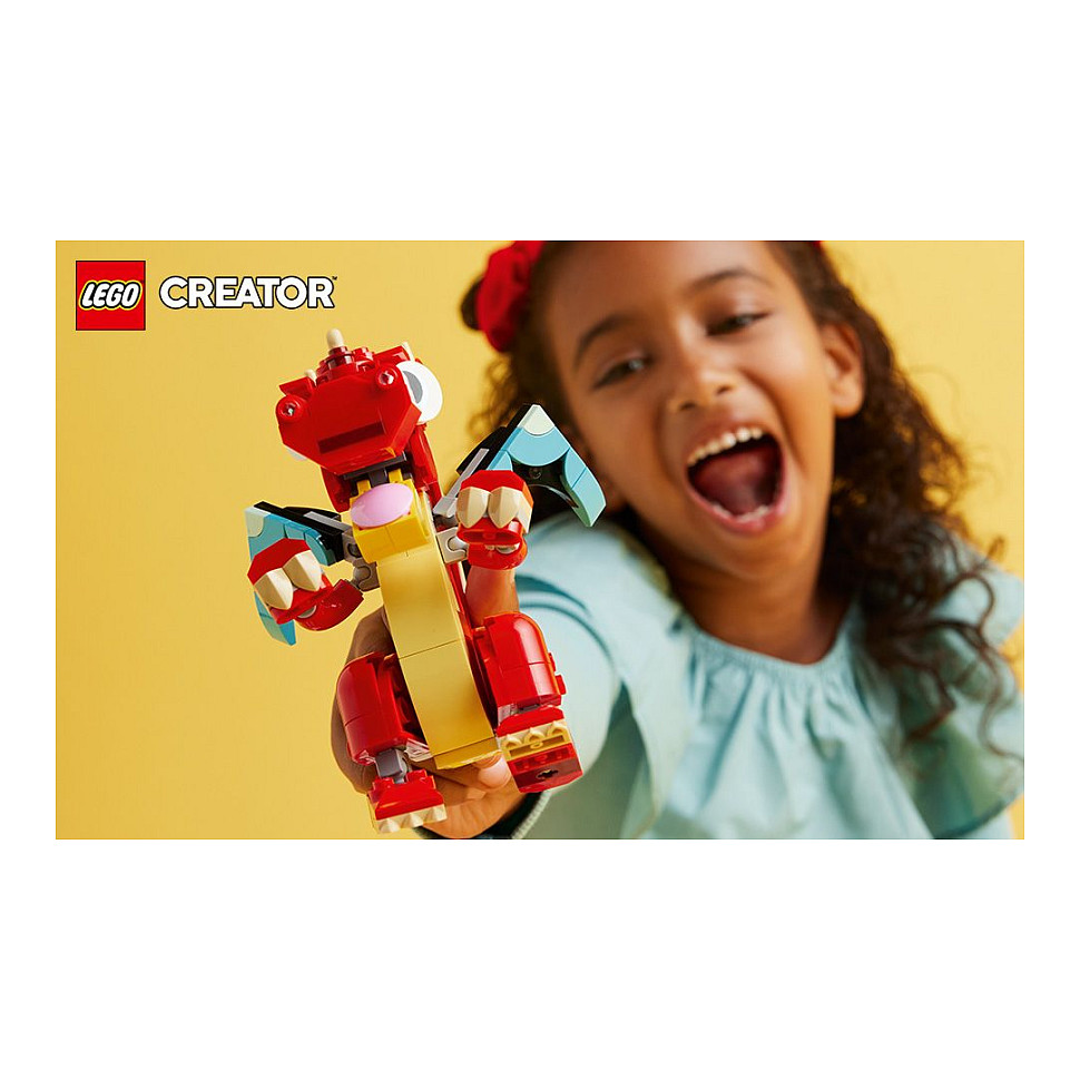 3 magische Spielzeugtiere in 1 Set: LEGO® Creator Roter Drache ist ein Spielset, das Jungen und Mädchen ab 6 Jahren 3 verschiedene bunte Modelle mit denselben enthaltenen Steinen bauen und immer wieder umbauen lässt