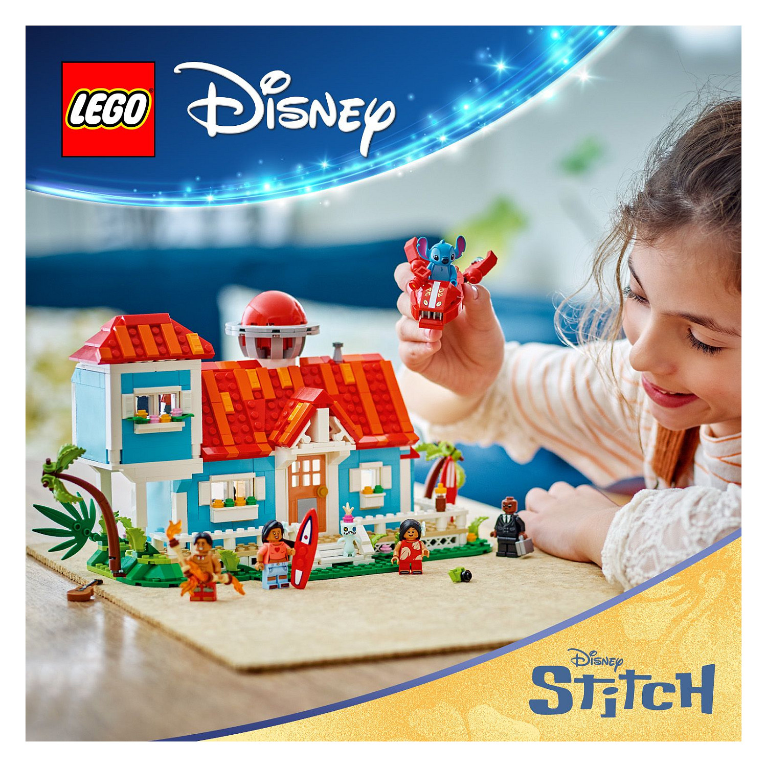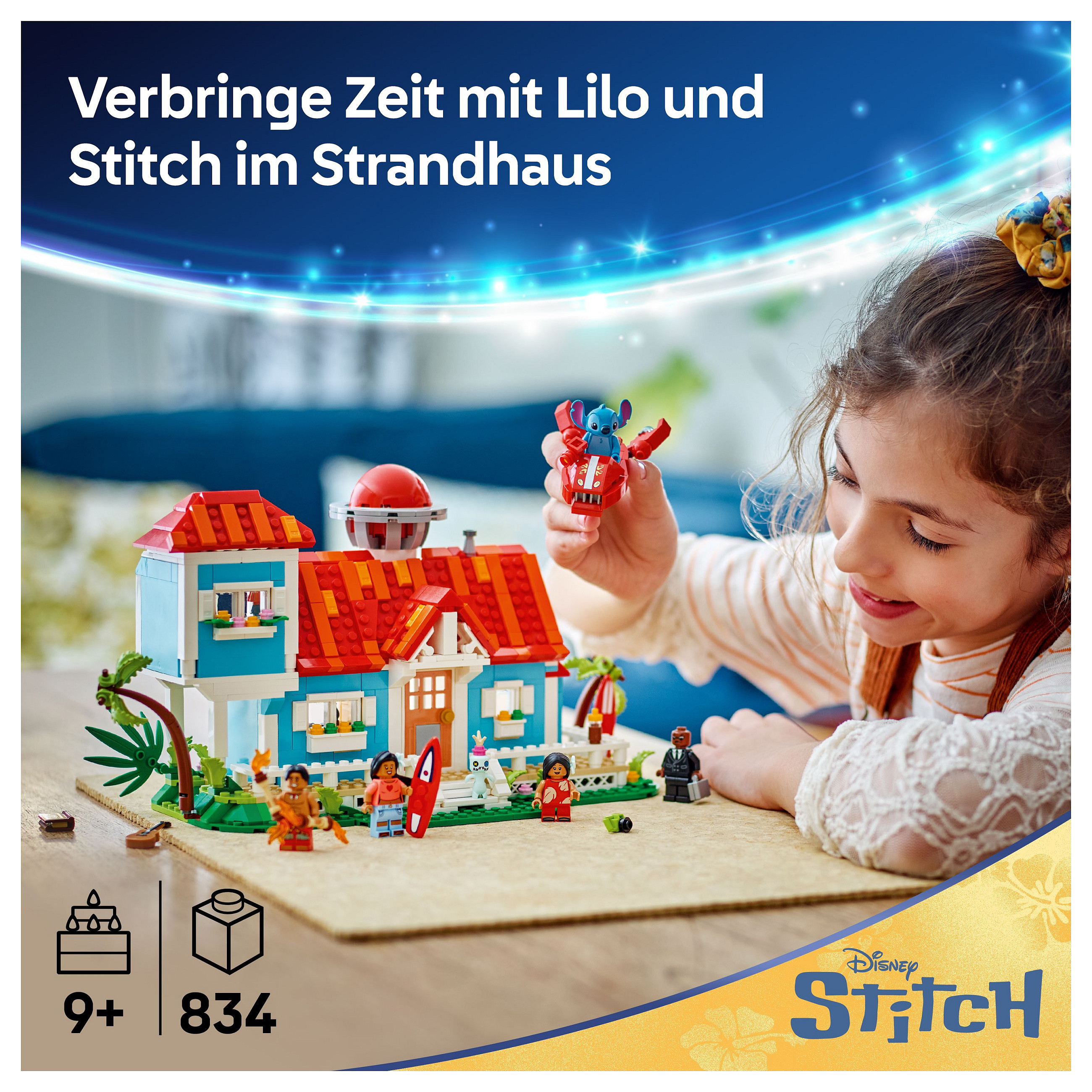 LEGO® ǀ Disney Das Strandhaus aus „Lilo und Stitch“ (43268) ist ein Bau- und Spielset, in dem Kinder und Fans tolle Abenteuer erwarten. Neben einem 2-geschossigen Strandhaus beinhaltet dieses coole Disney Bauset jede Menge Details aus dem Film sowie einige Easter Eggs, beispielsweise 2 Surfbretter, Lilos Puppe Scrump, einen Plattenspieler, ein Weckglas, ein Raumschiff aus LEGO Steinen und 5 LEGO ǀ Disney Minifiguren. David, Lilo, Herr Bobo, Nani und Stitch laden zu unzähligen spannenden Abenteuern ein.