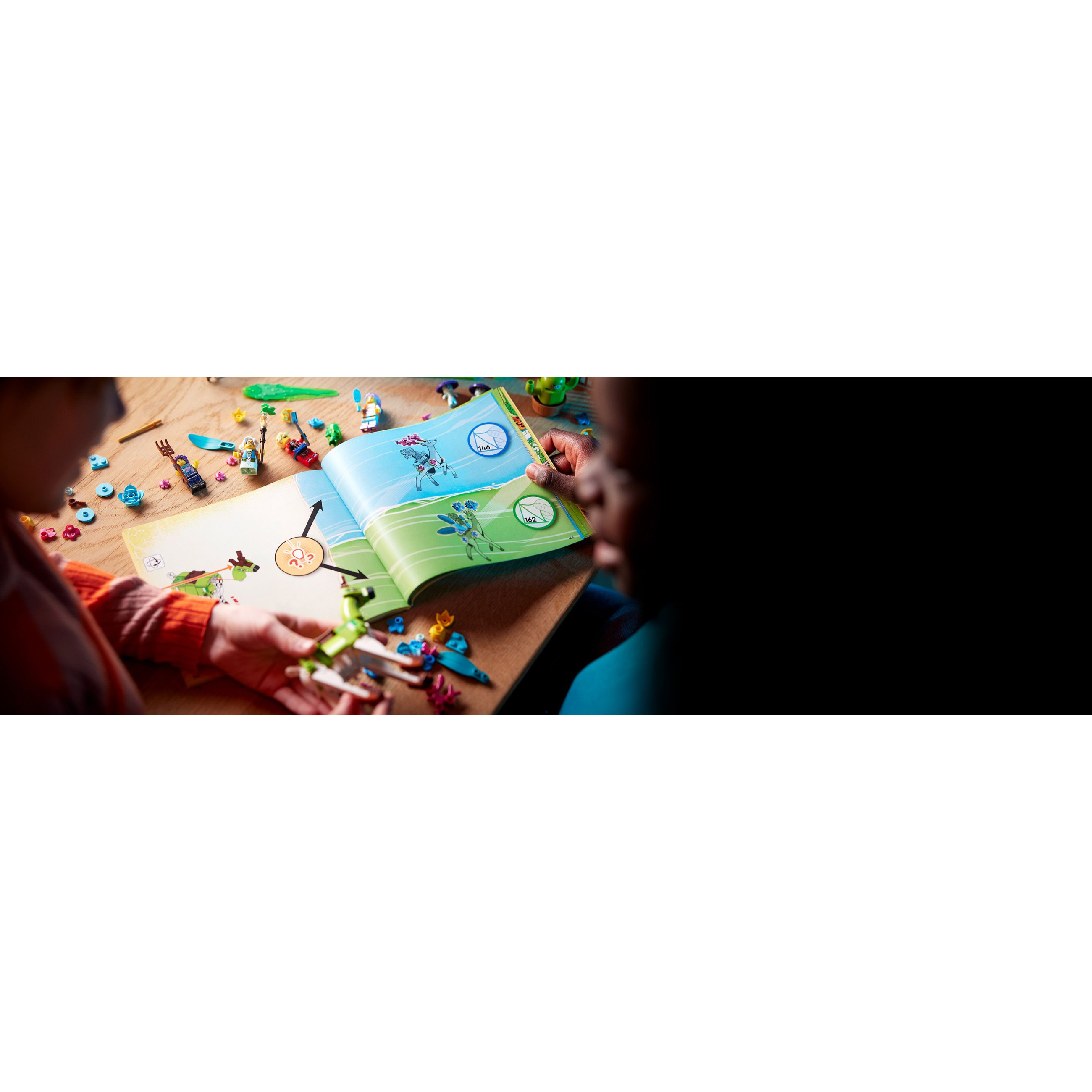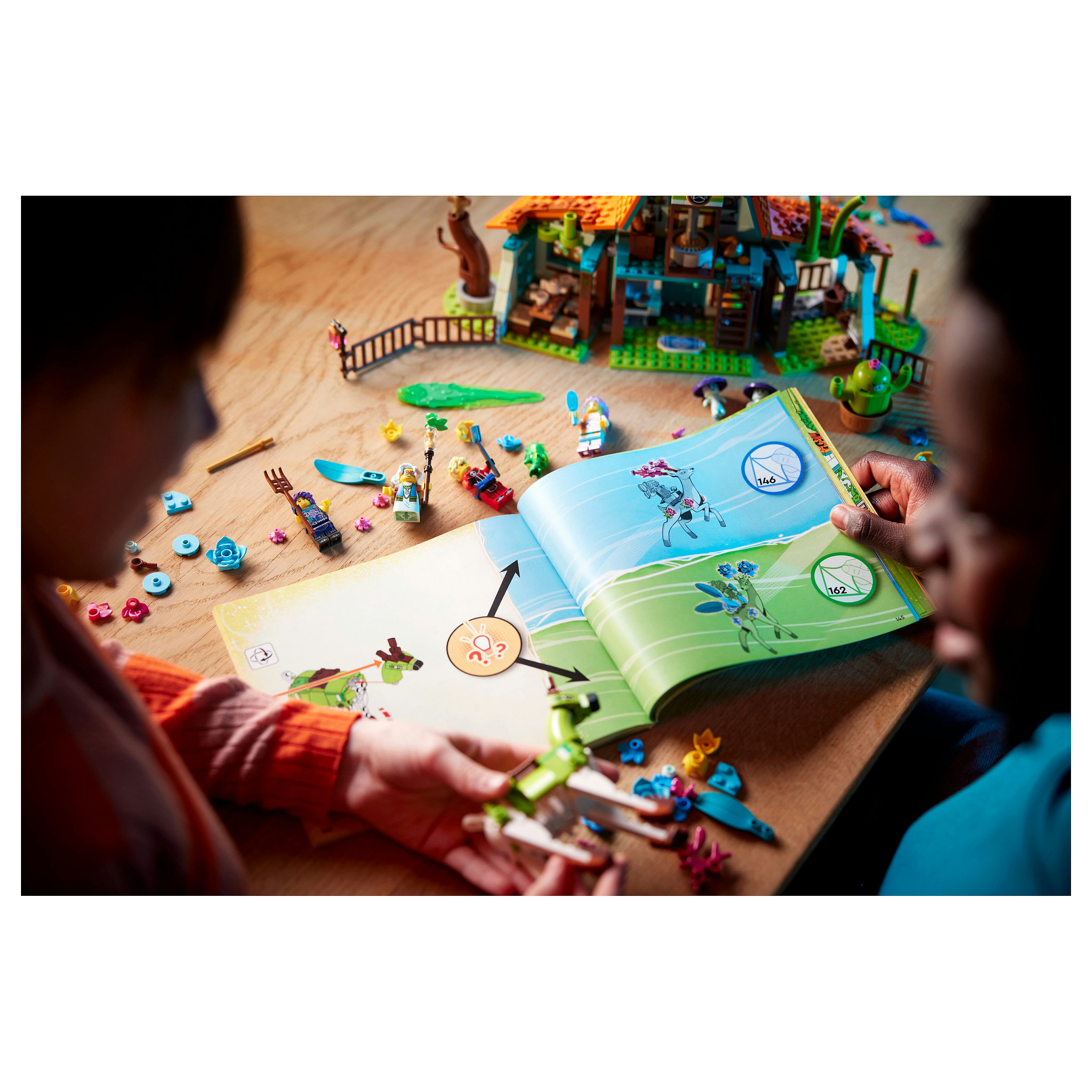 Den Kopf und die Beine des Hirsches kann man bewegen, um ihn beim Spielen leicht in die richtigen Posen zu bringen. Du kannst sein Geweih gegen Blumen aus dem Stall austauschen. Auch 4 detailgetreue Minifiguren – Izzie, Zoey, Cooper und Mrs. Castillo – laden zum Spielen ein.