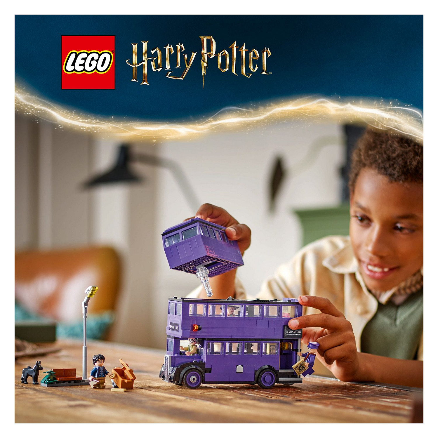 Dieses magische Bau- und Spielset beinhaltet auch 5 LEGO Harry Potter Charaktere – Harry Potter, Ernie Prang, Stan Shunpike, eine schlafende Hexe und Tatze –, um unvergessliche Szenen aus Harry Potter und der Gefangene von Askaban nachstellen zu können. Ein baubarer Laternenpfahl, an dem Harry auf den Fahrenden Ritter wartete und sich vor Tatze fürchtete, Harrys Reisekoffer und eine Ausgabe von Der Tagesprophet mit der Schlagzeile „Escape from Azkaban“ (Flucht aus Askaban) sind nur einige der authentischen Details, die Kinder zu vielen kreativen Rollenspielen einladen.