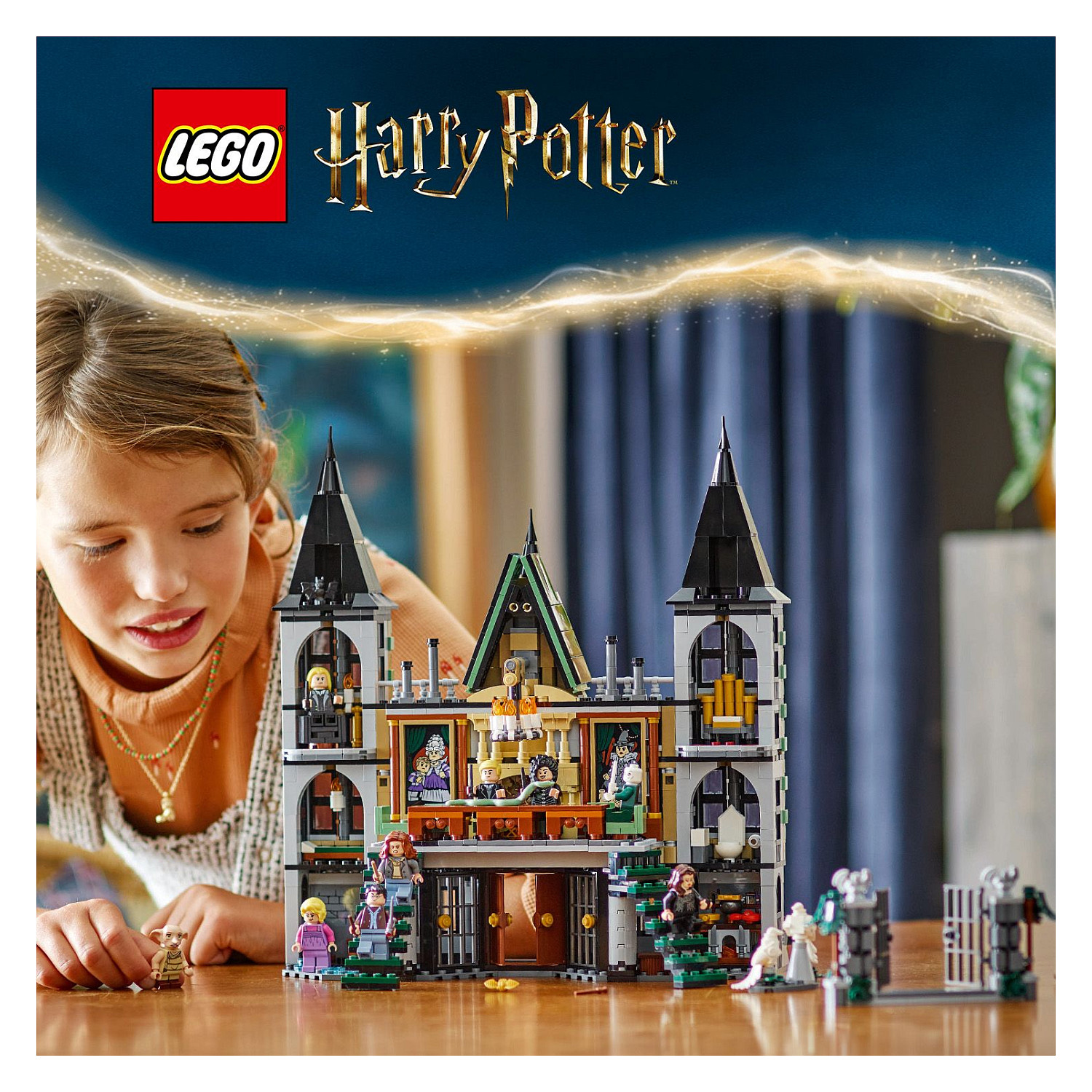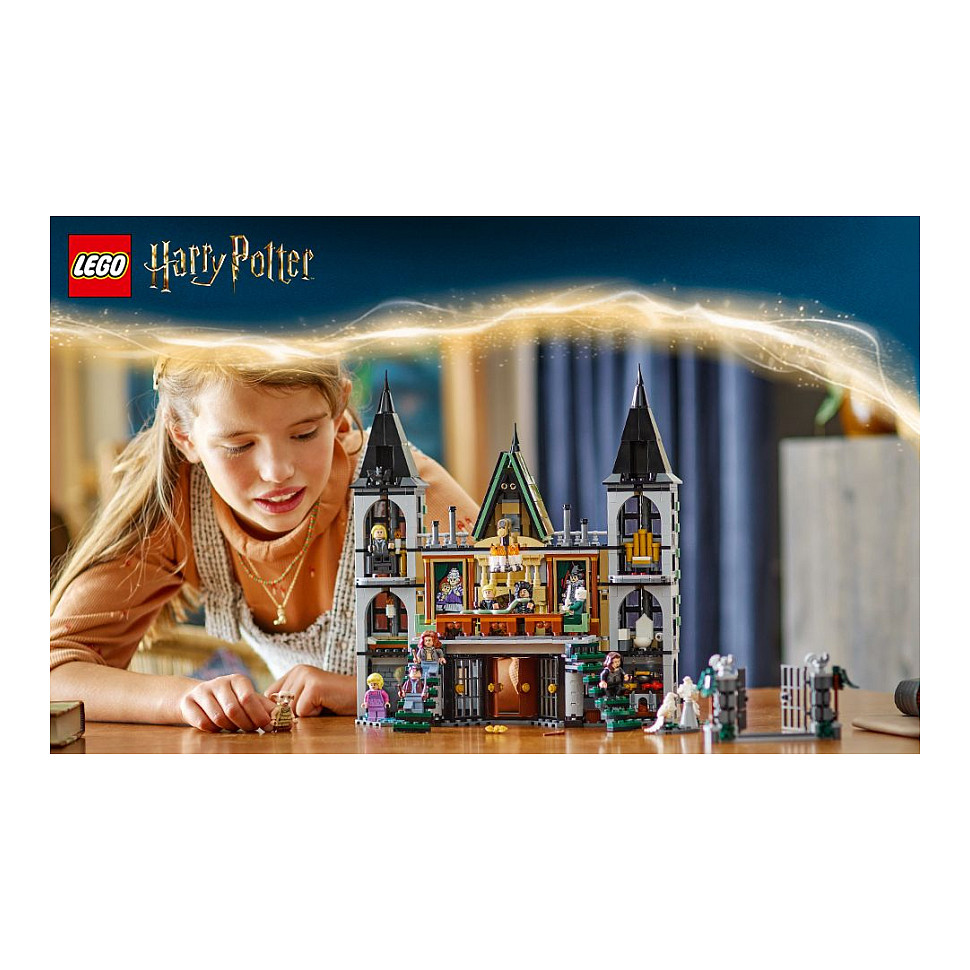 LEGO® Harry Potter™ Landsitz der Familie Malfoy (76453) lässt Kinder eine spannende Szene aus Harry Potter und die Heiligtümer des Todes nachstellen. Dieses Set enthält das allererste LEGO Modell des Landsitzes. Das Harry Potter Set zum Bauen, Spielen und Ausstellen ist ein magisches Geschenk für Jungen, Mädchen und alle großen Fans der Zauberwelt. Draco Malfoys Haus ist detailgetreu mit dem Gesellschaftszimmer samt einer Funktion, die den Kronleuchter herunterfallen lässt, mit Dracos Schlafzimmer sowie mit 2 Treppen in den Keller nachgebildet, in dem Harry Potter eingesperrt ist. 9 Minifiguren, unter anderem Narzissa Malfoy, Lord Voldemort™ und Dobby™, sowie die Spielzeugfigur Nagini lassen Kinder kreativ spielen.