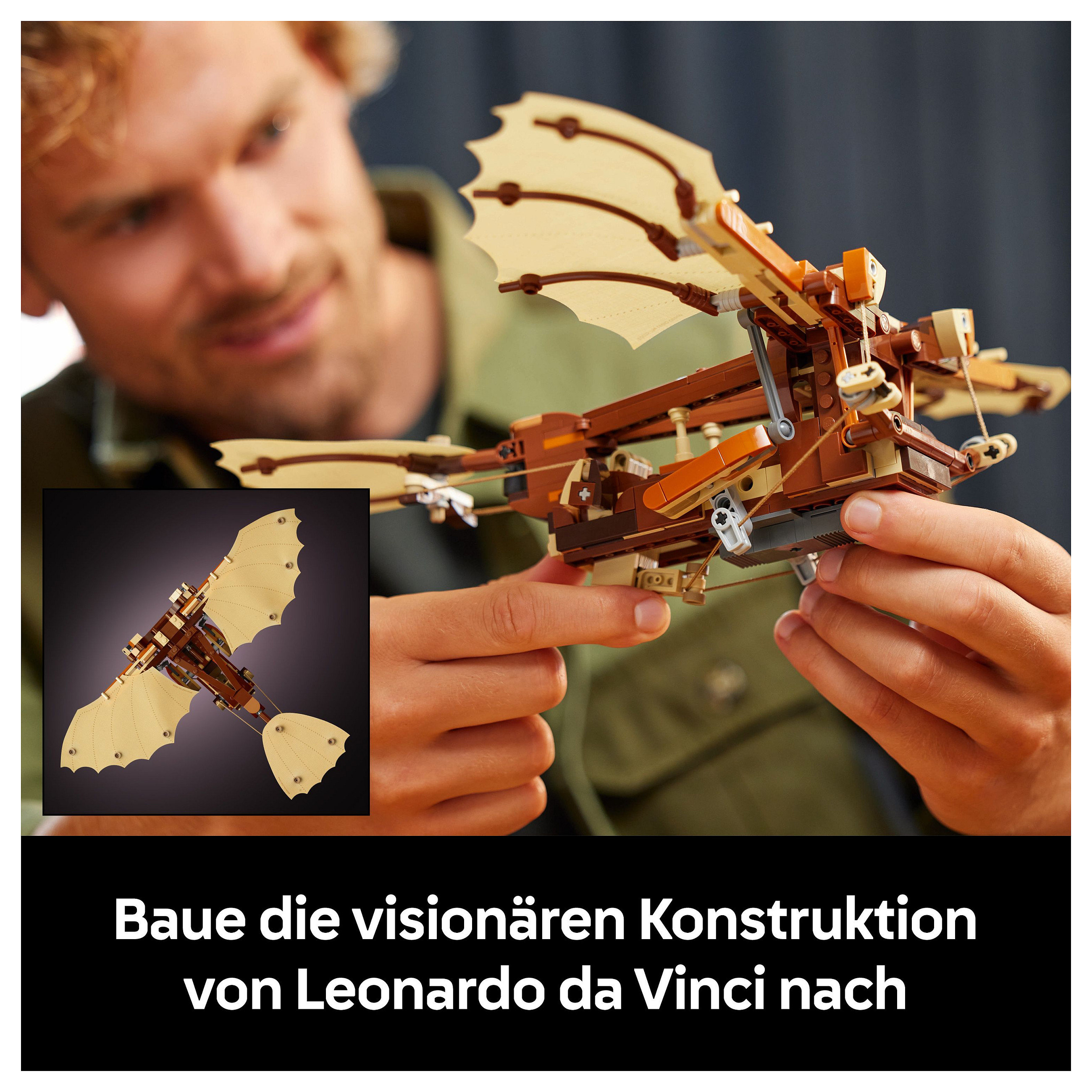 Da Vincis Schwingenflügler– ein Bauset für Erwachsene: LEGO® Icons Leonardo da Vincis Fluggerät ist ein Bauprojekt für Erwachsene und lässt dich die innovativen Konzepte aus den frühesten Anfängen der Luftfahrt entdecken