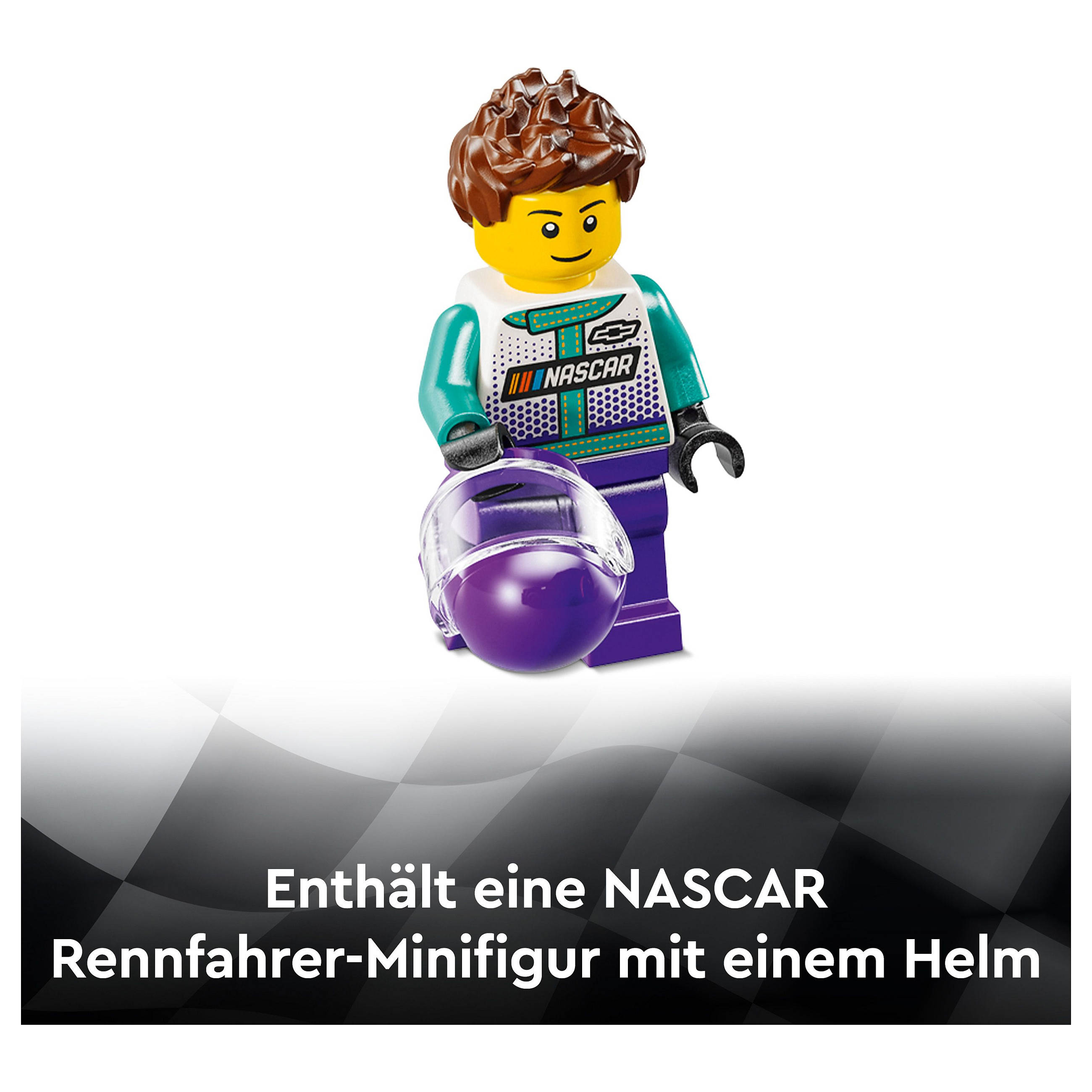 1 Minifigur: Das Chevrolet-Spielset beinhaltet auch eine NASCAR® Rennfahrer-Minifigur mit Helm, die Kinder ans Steuer setzen und eigene NASCAR Rennen austragen lassen können