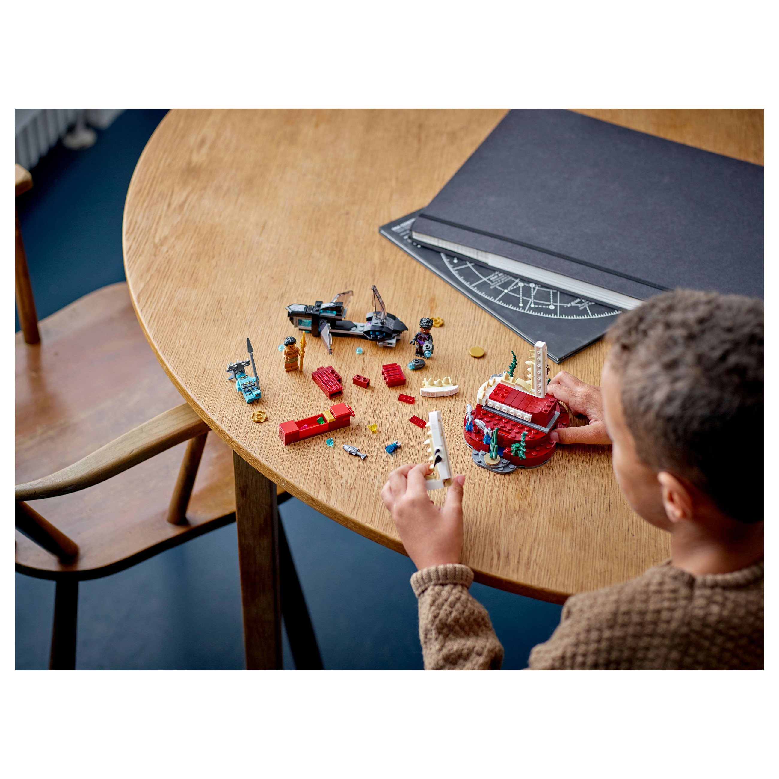 Marvel Charaktere: Beinhaltet die Minifiguren Shuri, Attuma und König Namor, ein baubares U-Boot, einen Thronsaal, Seetang und Fische