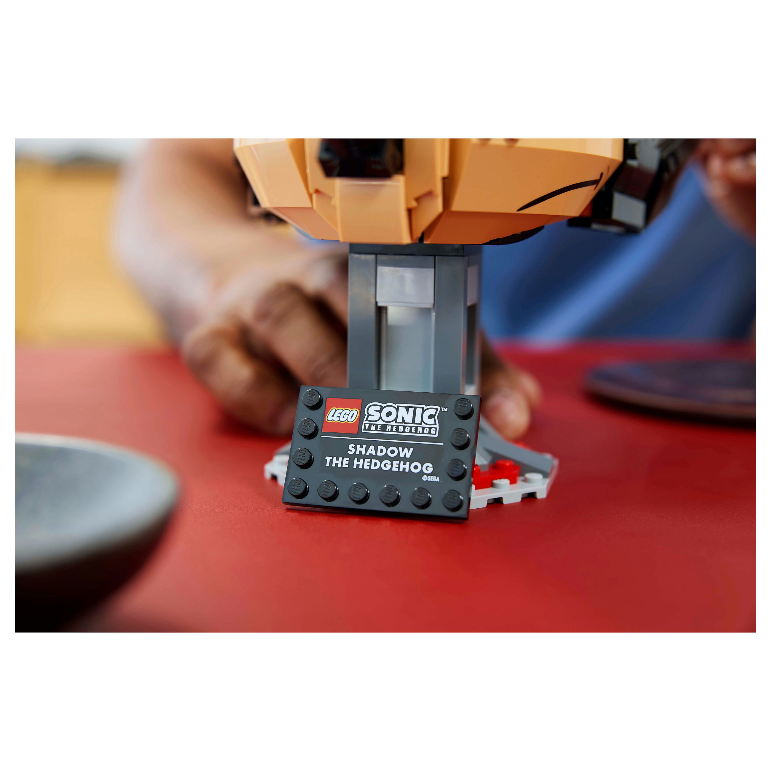 Abmessungen: Auf dem Sockel ist der Kopf von Shadow the Hedgehog aus diesem 720-teiligen Set zum Bauen und Ausstellen 20 cm hoch, 17 cm breit und 21 cm tief