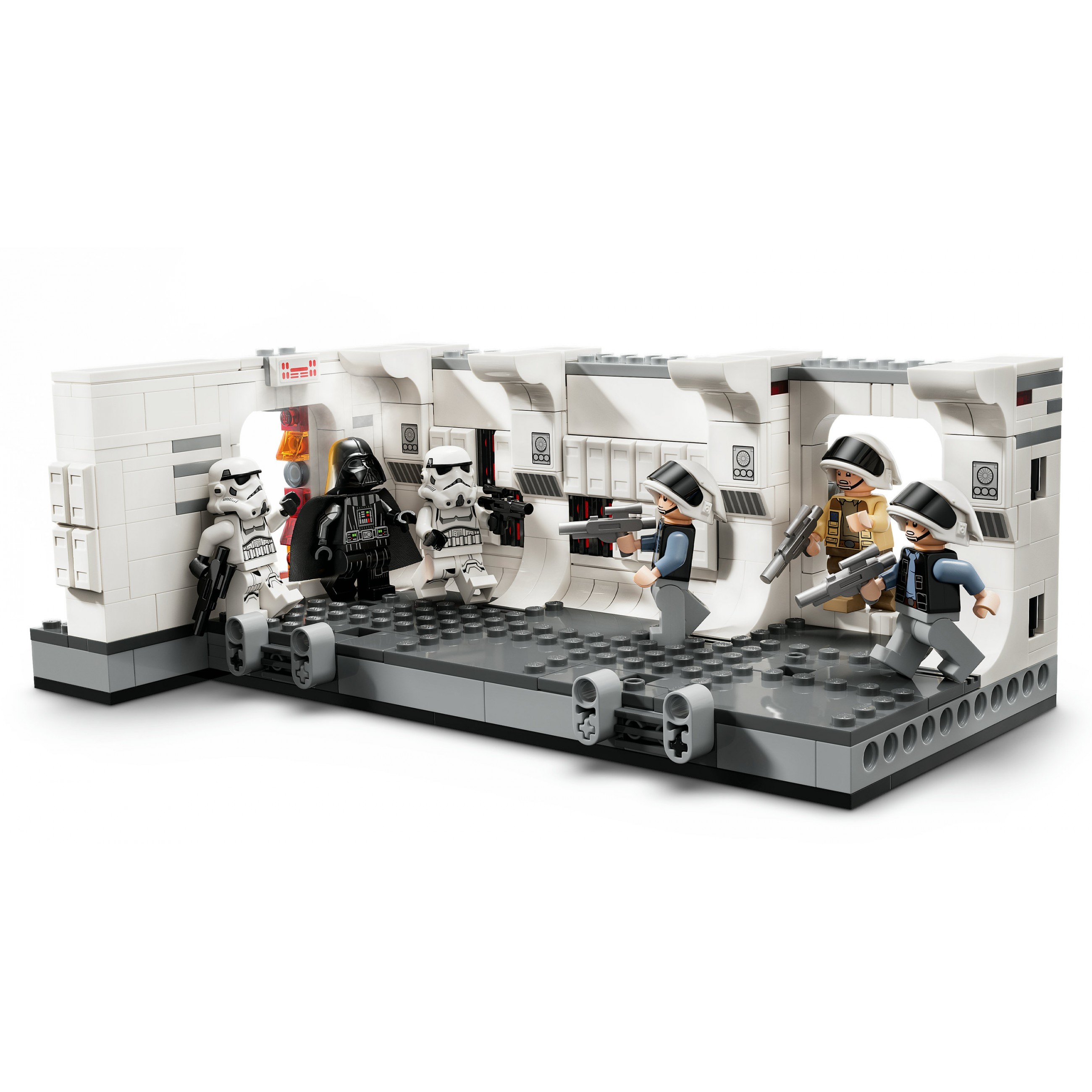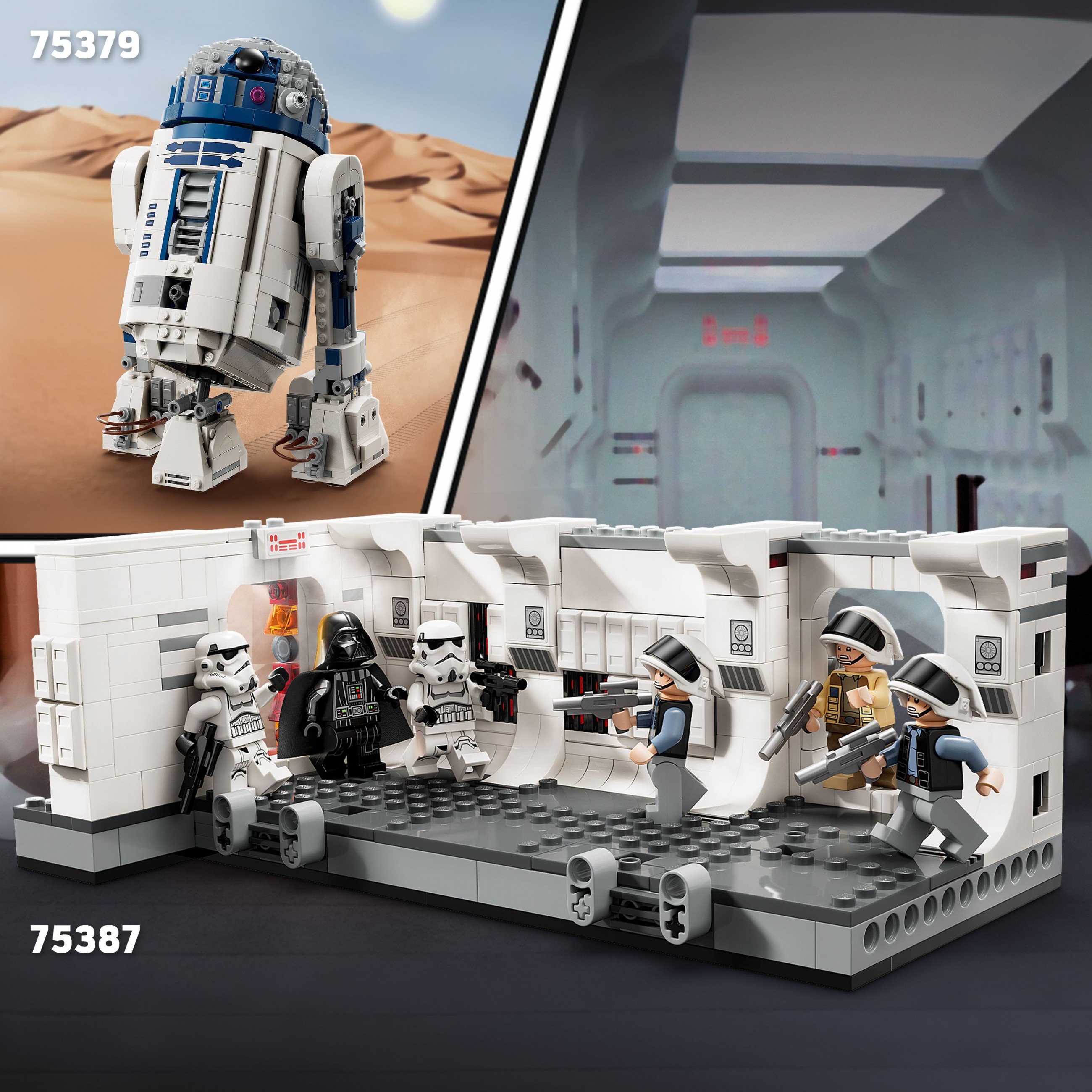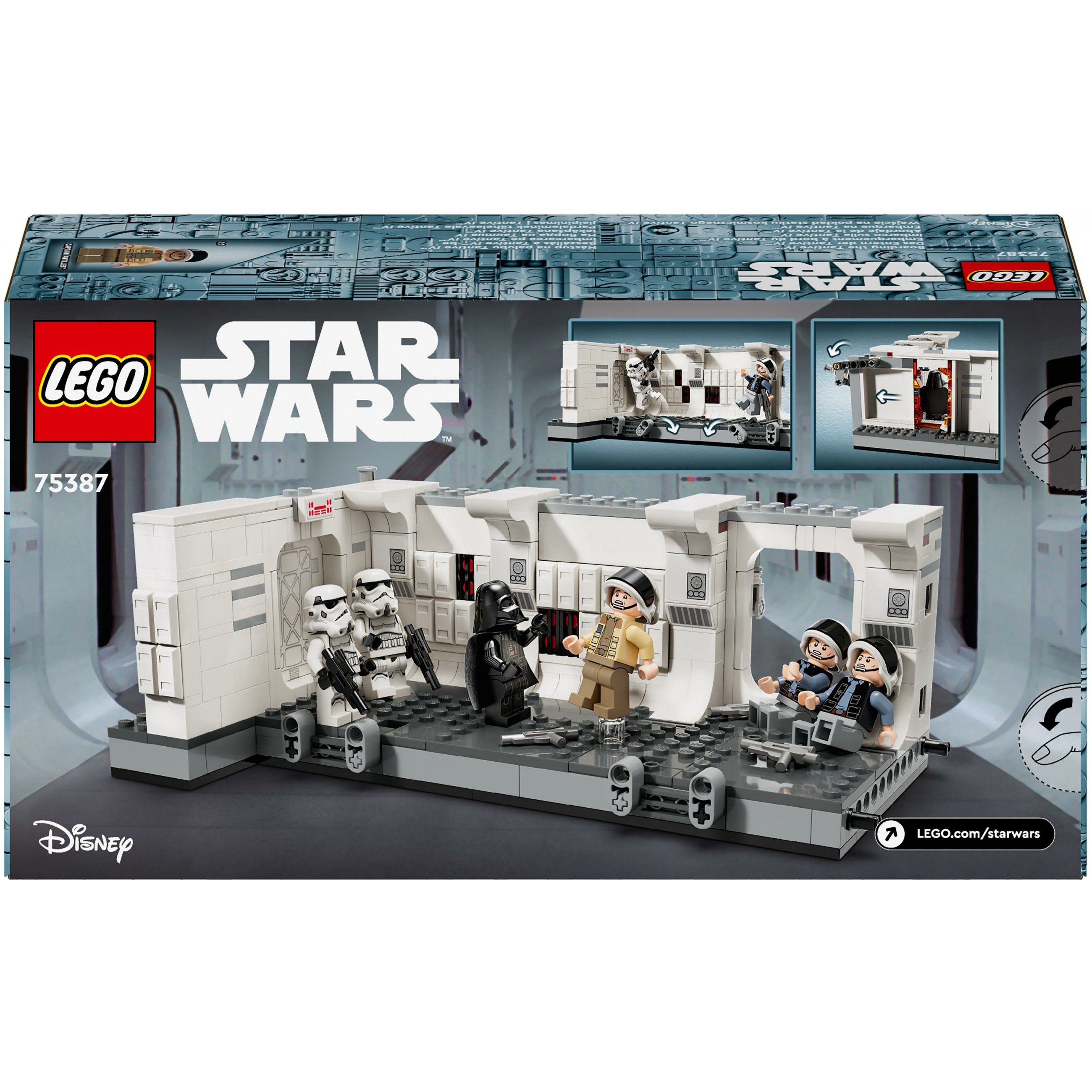 Dieses Bau- und Spielset (75387) für Kinder ab 8 Jahren lässt dich noch einmal hautnah erleben, wie Darth Vader mit seinen Sturmtrupplern die Tantive IV in Star Wars: Eine neue Hoffnung entert. Das Set beinhaltet ein detailgetreu nachgebildetes Modell des Korridors in der Tantive IV, wo sich Darth Vaders Sturmtruppler ein Gefecht mit den von Captain Antilles angeführten Rebellen liefern. Benutze den Hebel, um die Eingangstür aufzusprengen und die Rebellen umzustoßen. Mit den Verbindungselementen können Baumeister das Modell an ein weiteres separat erhältliches Set 75387 anbauen, um den Korridor zu erweitern.