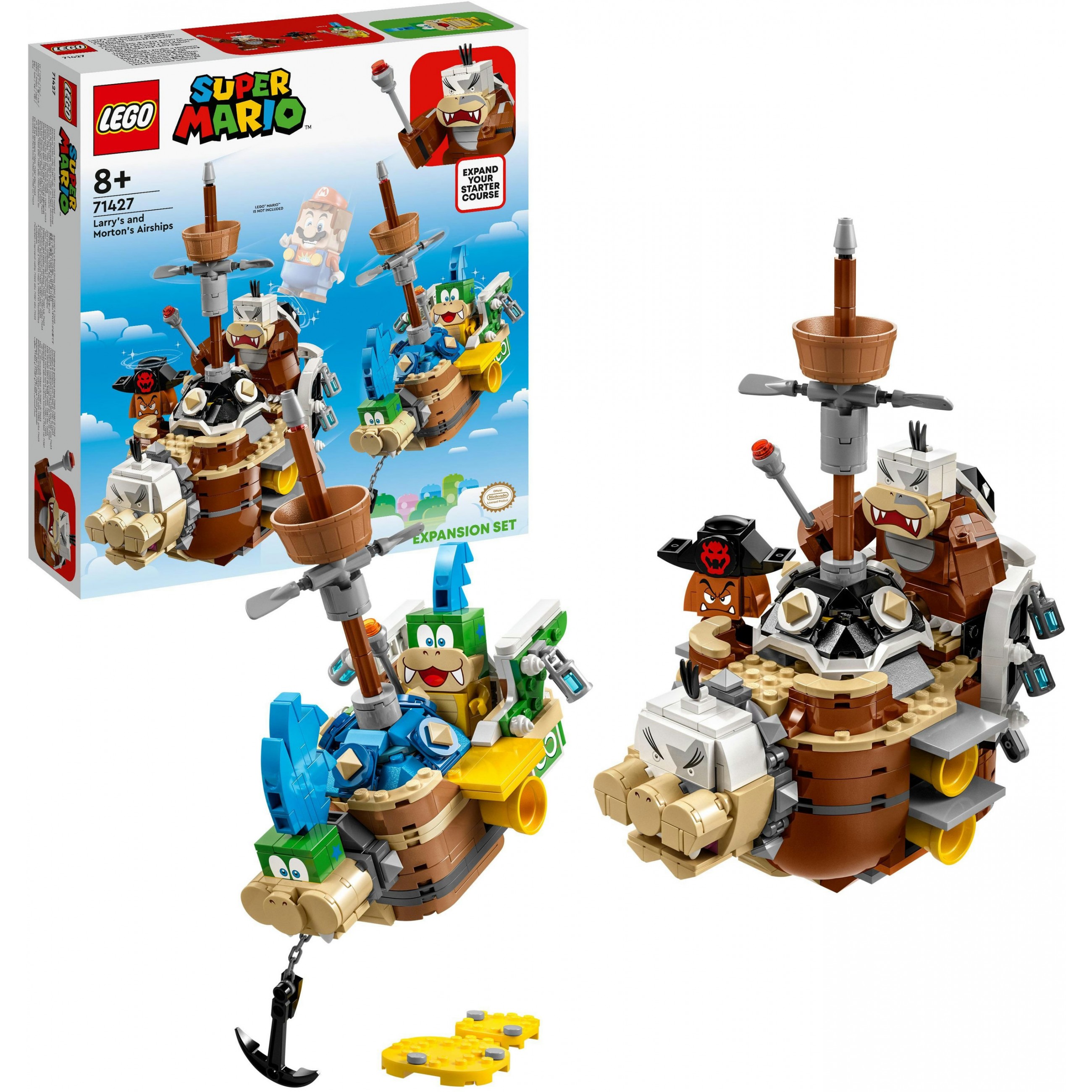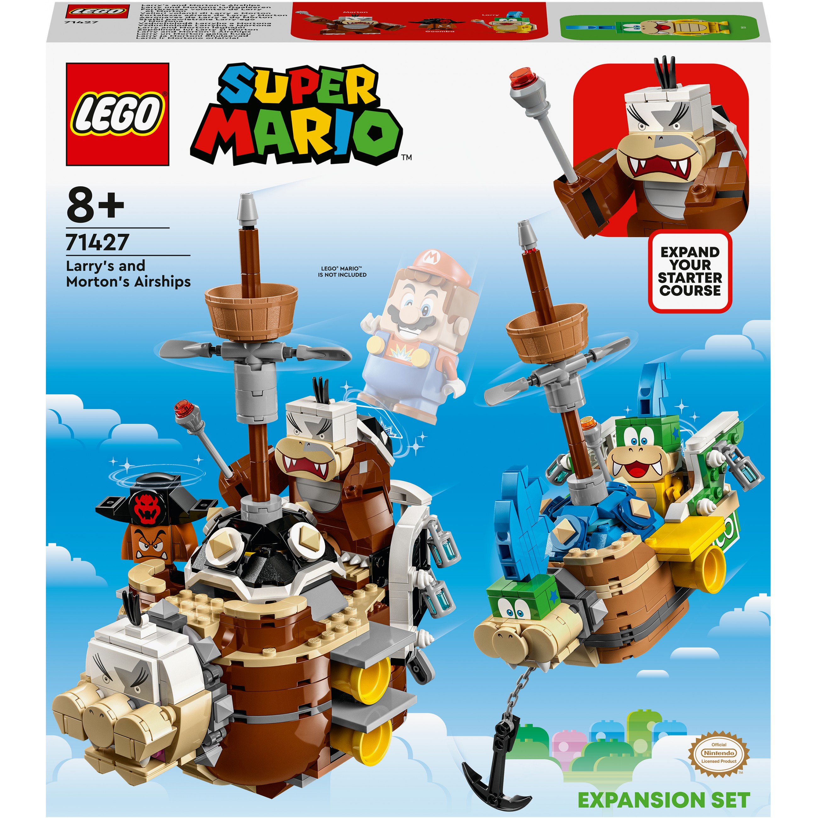 Larry und Mortons Luftgaleeren – Erweiterungsset (71427) lässt dich LEGO® Super Mario™ Abenteuer in der Luft darstellen. Das Set beinhaltet LEGO Versionen der Luftgaleeren der beiden Koopalinge. Setz LEGO® Mario™, LEGO® Luigi™ oder LEGO® Peach™ (keine dieser Figuren ist in diesem Set enthalten) in die Cockpits und lass die Luftgaleeren fliegen, um Soundeffekte zu erzeugen und ein virtuelles Kanonengefecht auszutragen. Mortons Luftgaleere lässt sich öffnen, um eine Battlezone in einem LEGO Super Mario Level zu erschaffen. Hinweis: Für ein interaktives Spielerlebnis wird ein Starterset (71360, 71387 oder 71403) benötigt.