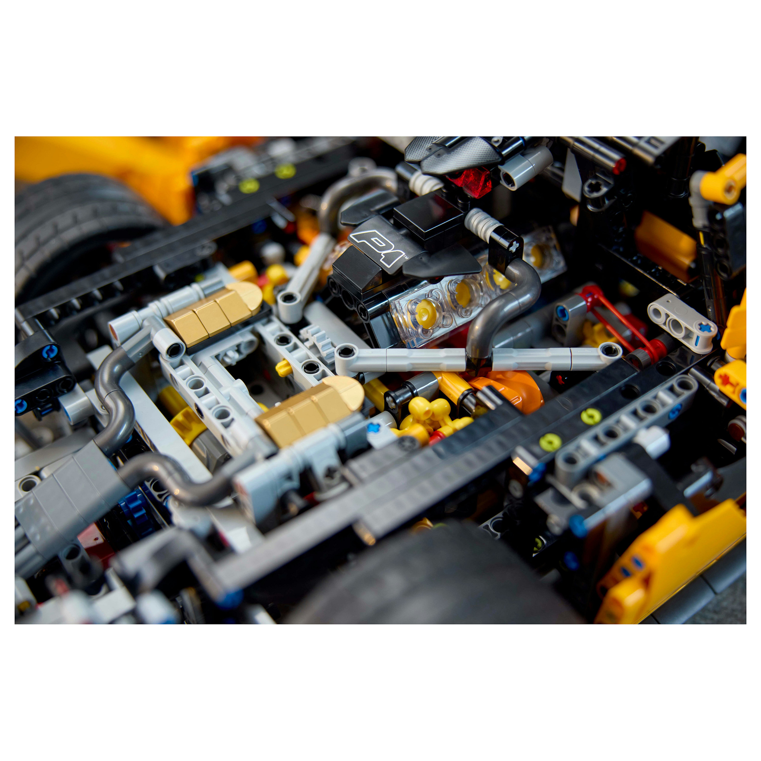 Lass den faszinierenden LEGO® Technic McLaren P1™ aus diesem Bauset deine Begeisterung für Supersportwagen entfachen. Vertiefe dich in all die Details und baue das imposante Modell im Maßstab 1:8. Nimm dir die Zeit, Funktionen wie das 7-Gang-Getriebe mit Schaltwalze, die Radaufhängungen und den V8-Kolbenmotor zu erkunden. Bewundere den verstellbaren Heckflügel und die hochklappbaren Schmetterlingsflügel. Stell das fertige Modell dann aus. Genau wie das echte Auto verfügt auch die LEGO Technic Version über eine einmalige Seriennummer, die dir Zugang zu exklusiven Online-Inhalten verschafft.