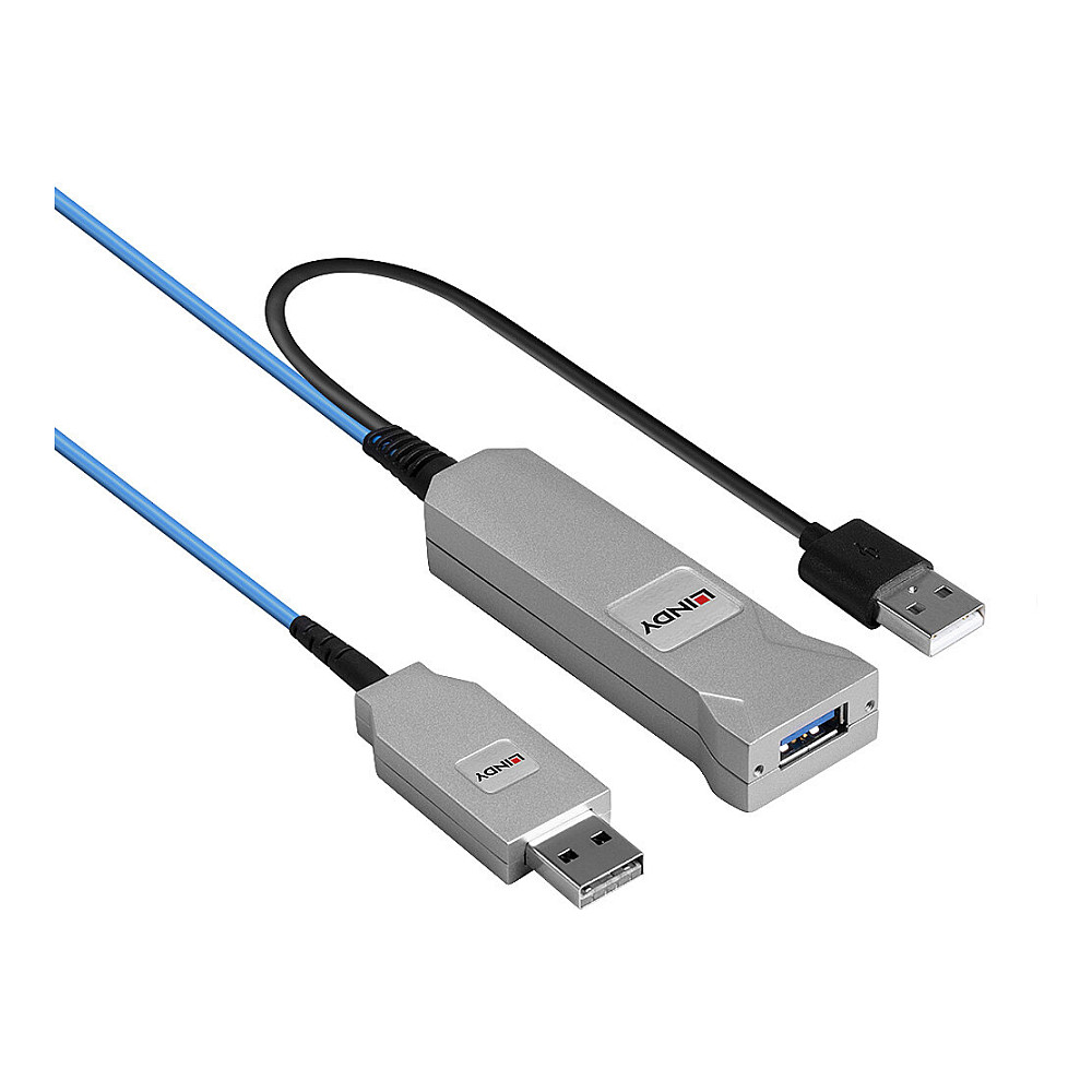 Dieses optische USB 3.0 Kabel überträgt Daten verlustfrei über größere Distanzen als herkömmliche Kupferkabel bei gleichbleibend hohen Datenraten bis 5Gbit/s. Bis zu 3 Kabel können hintereinander angeschlossen werden bis zu einer Länge von 300m . Außerdem ist eine Kombination mit der 30m-Version No. 43345 möglich.